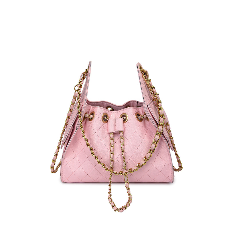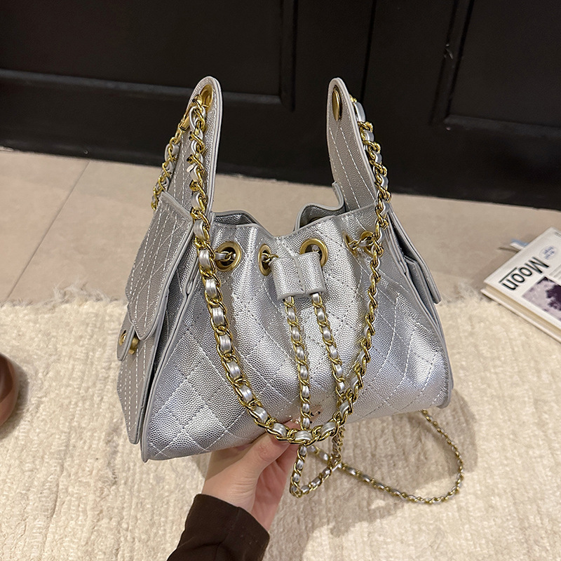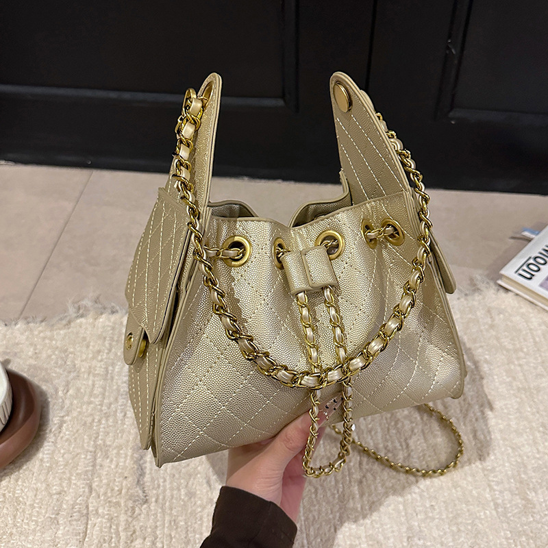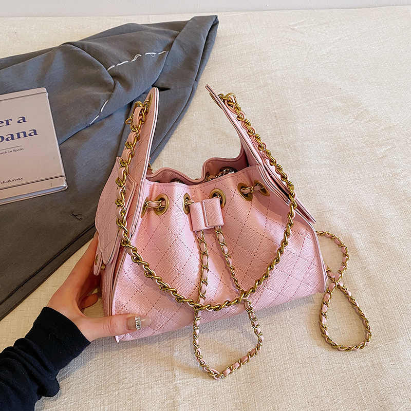 休闲时尚小香风托特包小众轻奢高级菱格链条单肩斜挎包抽绳腋下包