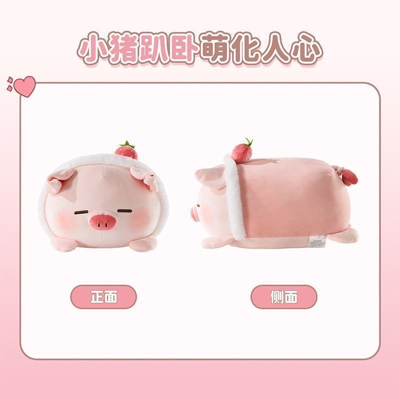 可爱草莓猪毛绒玩具公仔呆萌卡通胖嘟嘟床上睡觉女枕头批发靠垫