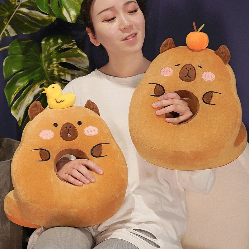 跨境佛系卡皮巴拉女生抱枕午睡枕毛绒玩具公仔水豚玩偶布娃娃礼物