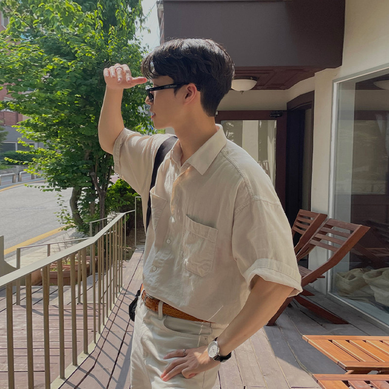 夏季短袖衬衫男士2025新款韩版薄款衬衣高级感轻熟风痞帅上衣ins