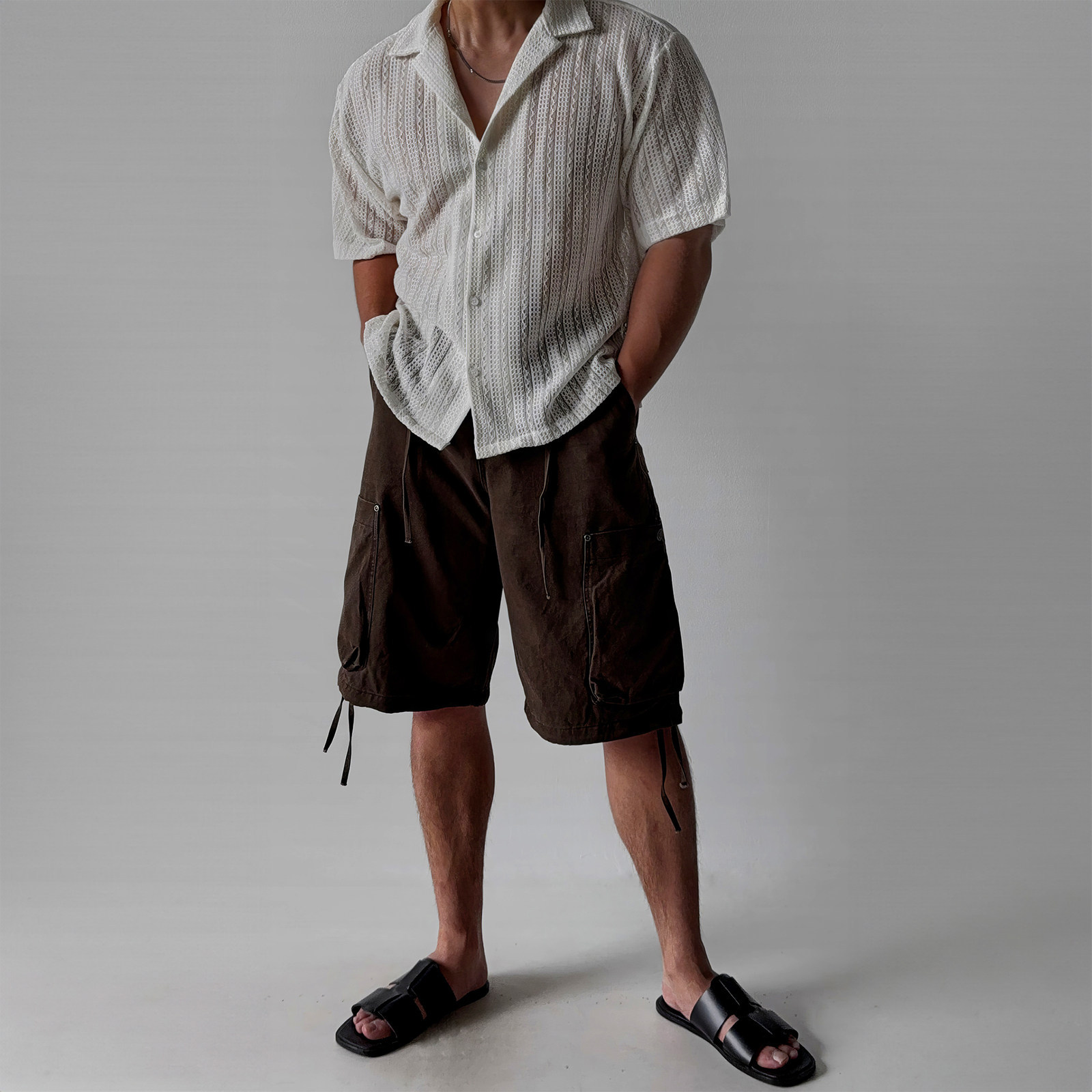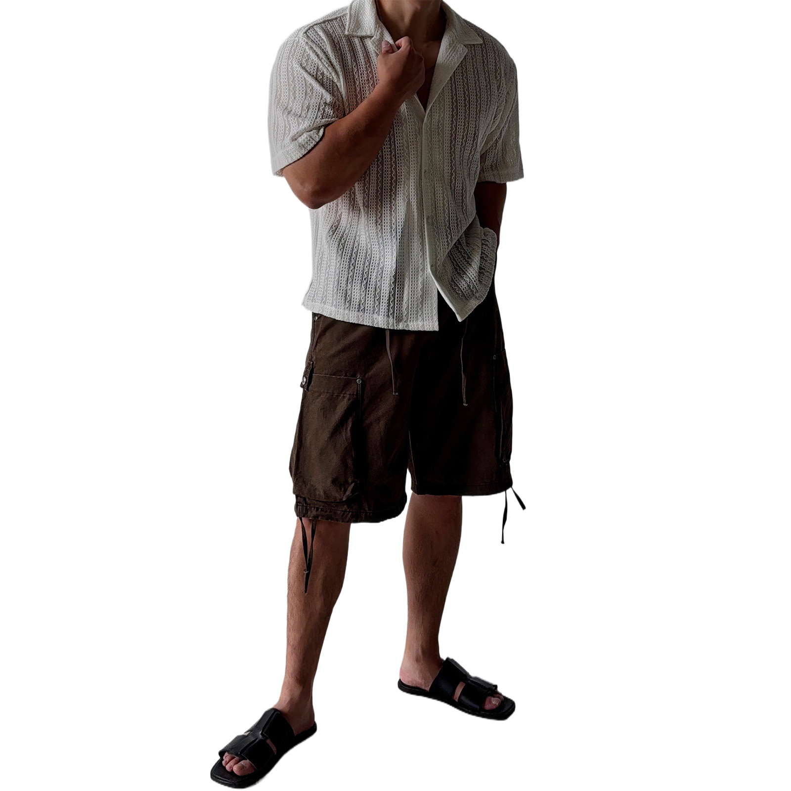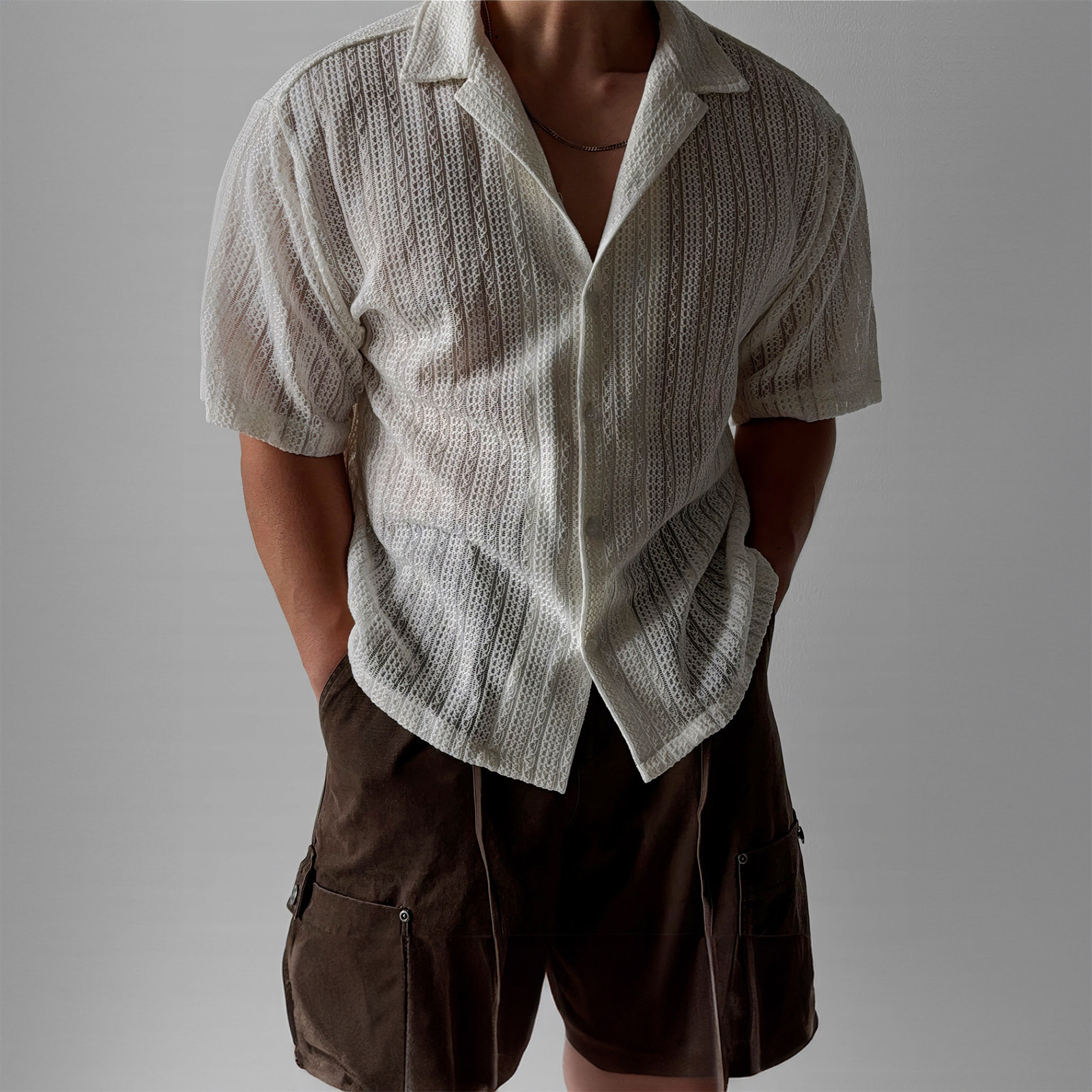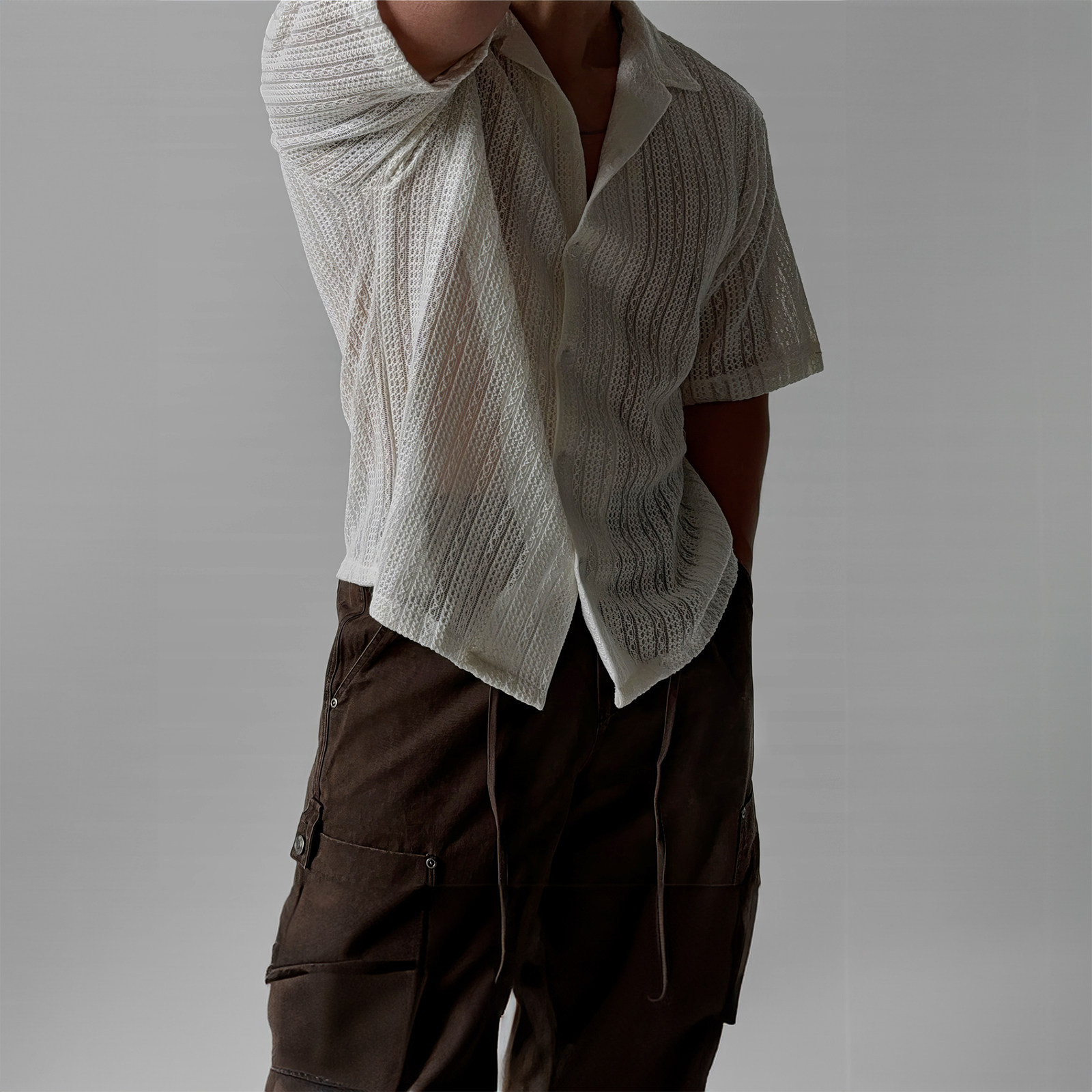 意式老钱风镂空短款衬衫T恤男款高级感小众夏季薄款百搭透气衬衣