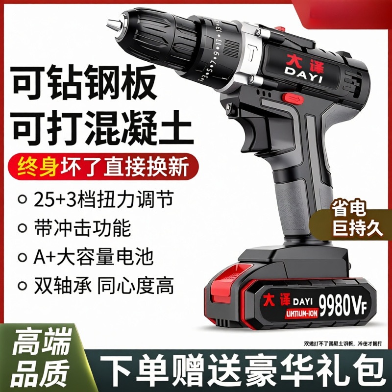 规格型号 | 冲击款工业电钻9980VF一电一充+纸盒-9-500W-默认项1.02-默认项-默认项-默认项-默认 | | 规格型号 | 冲击款工业电钻9980VF一电一充+塑箱礼包-9-500W-1.5kg-2000转/分-7牛米-10 |