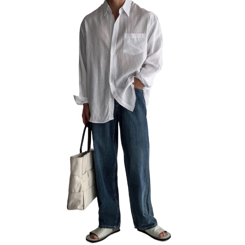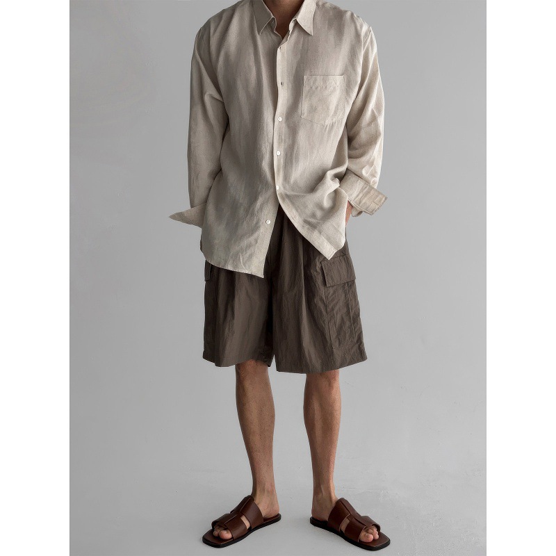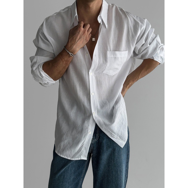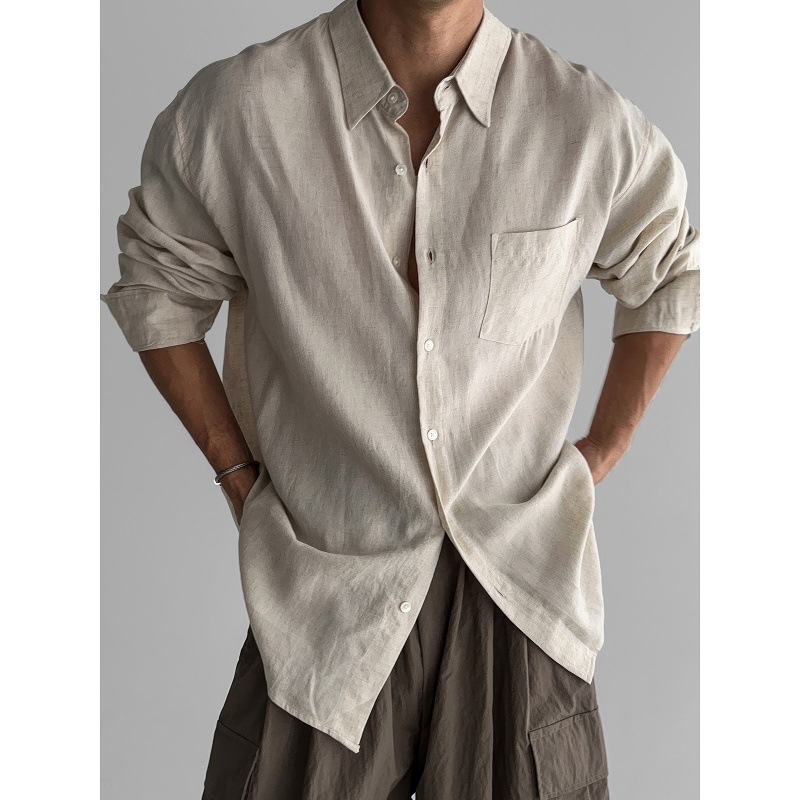亚麻长袖休闲衬衫男士春季薄透气衬衫覆古英国雅皮士懒惰风格衬衫
