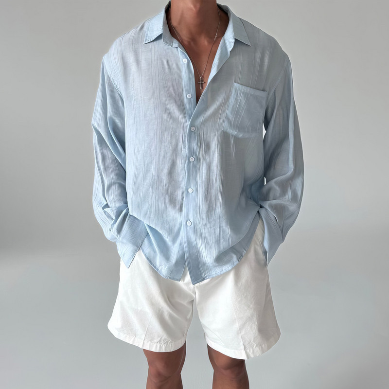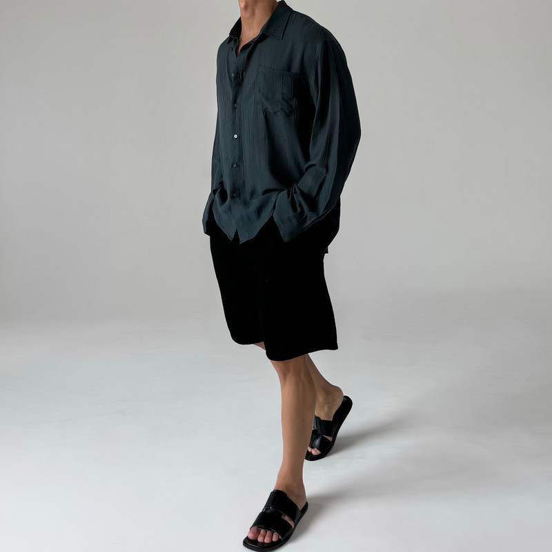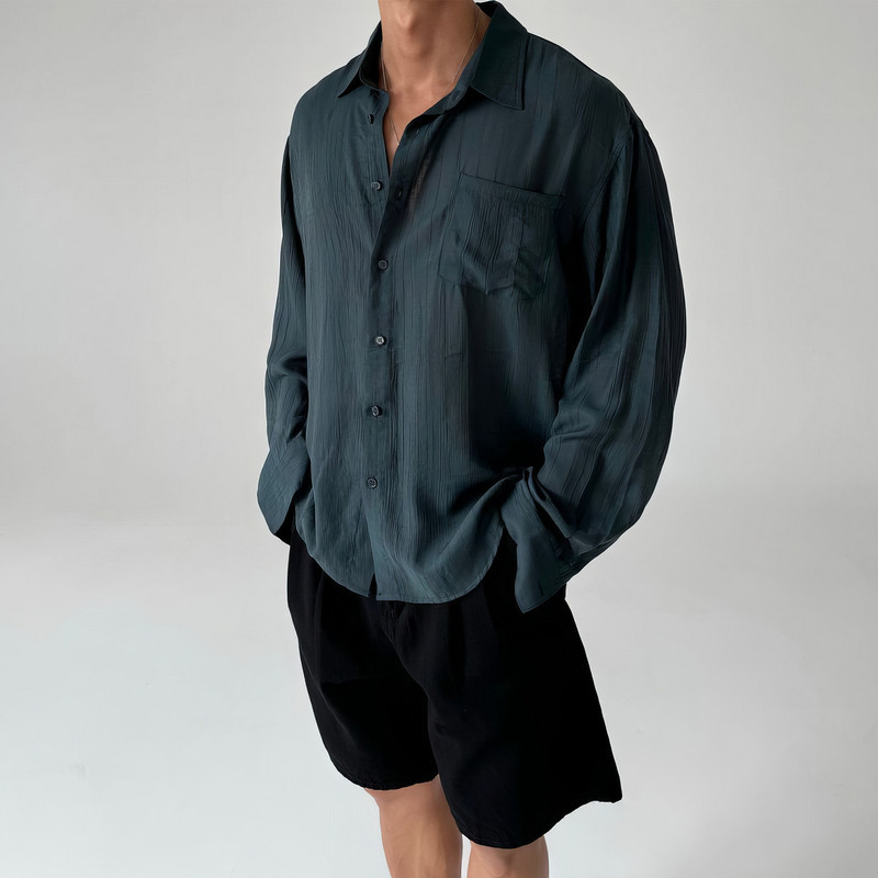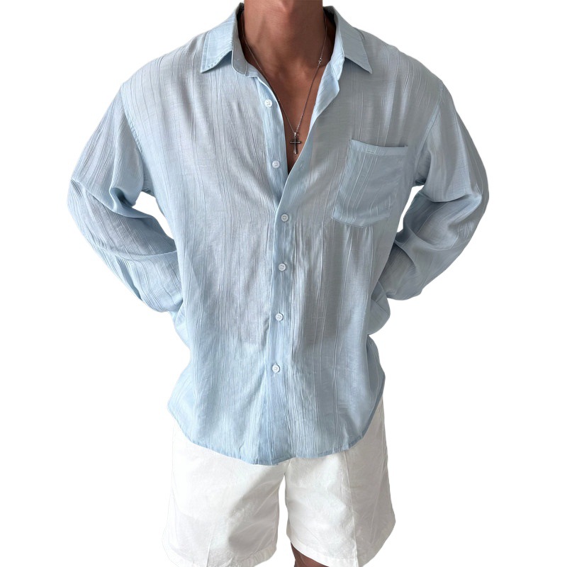 美式复古长袖衬衫男士春季韩系高级感宽松休闲褶皱纹理感防晒衬衣