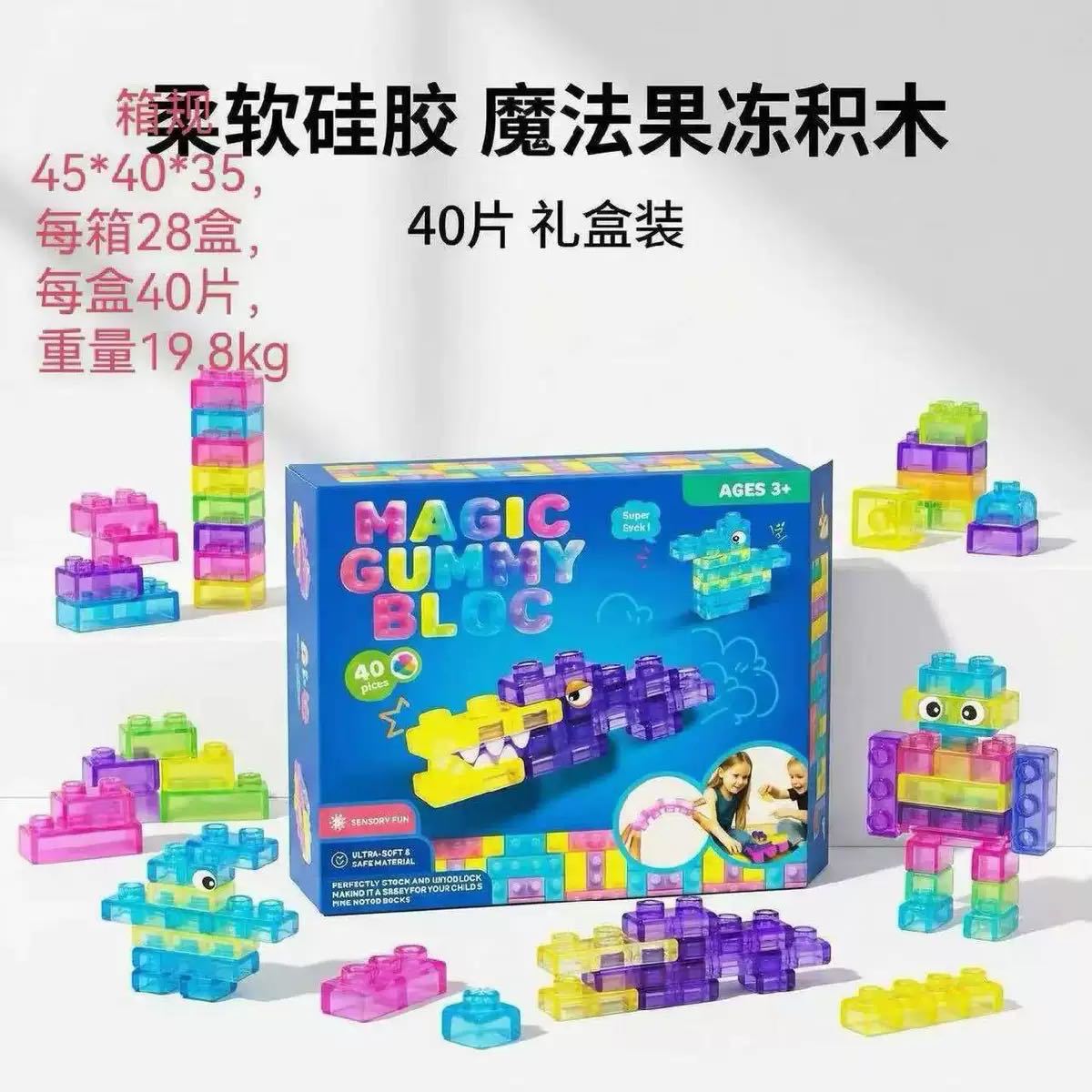 果冻积木 Sensory Soft Building跨境爆款软胶婴儿硅胶套装叠叠乐