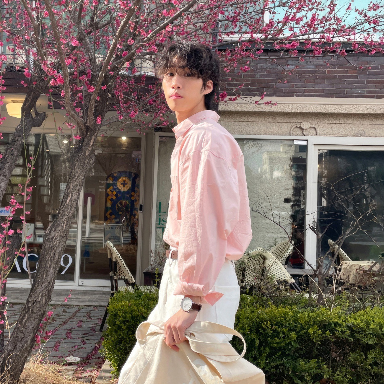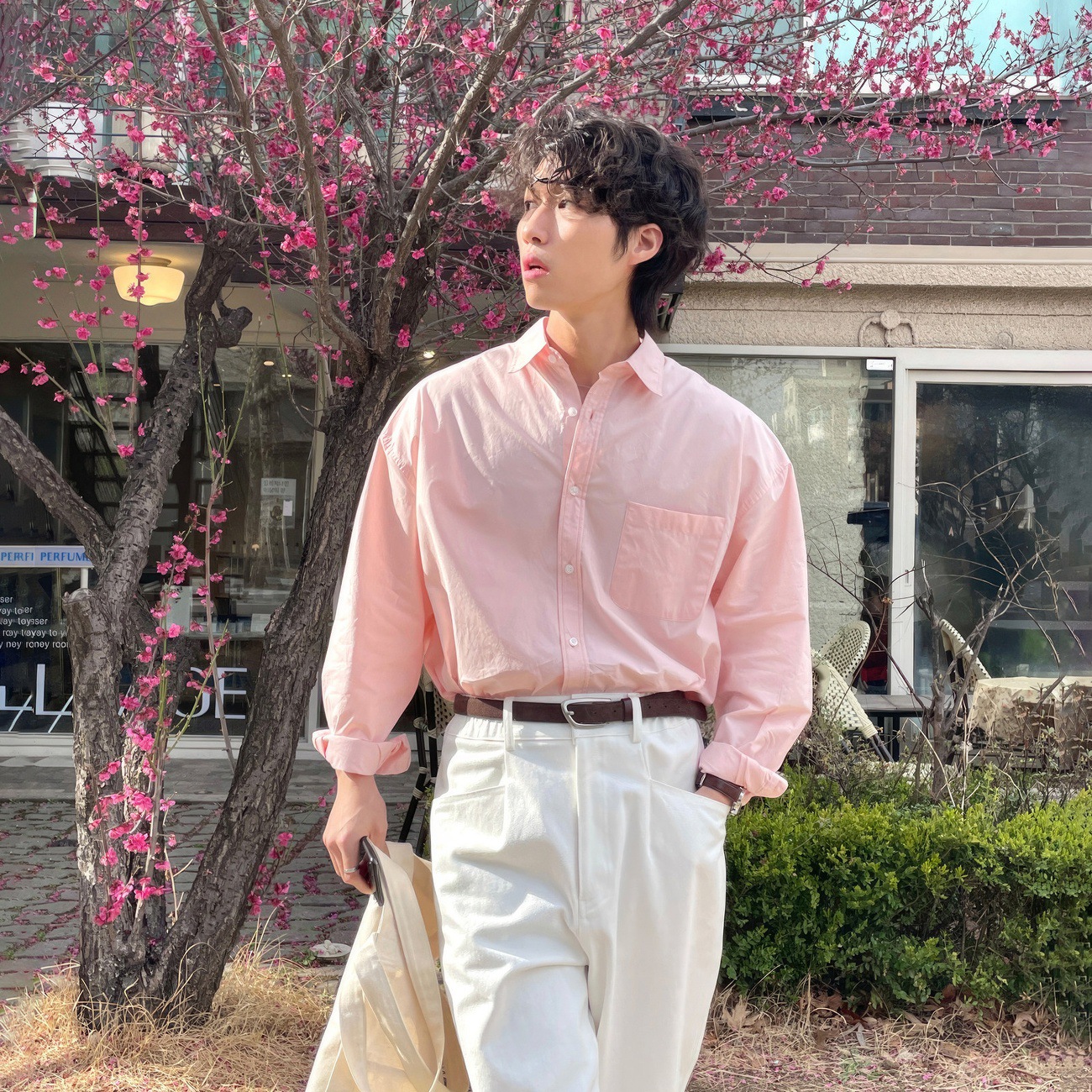 粉色长袖衬衫男女同款韩版约会穿搭休闲百搭慵懒防晒衬衣外套