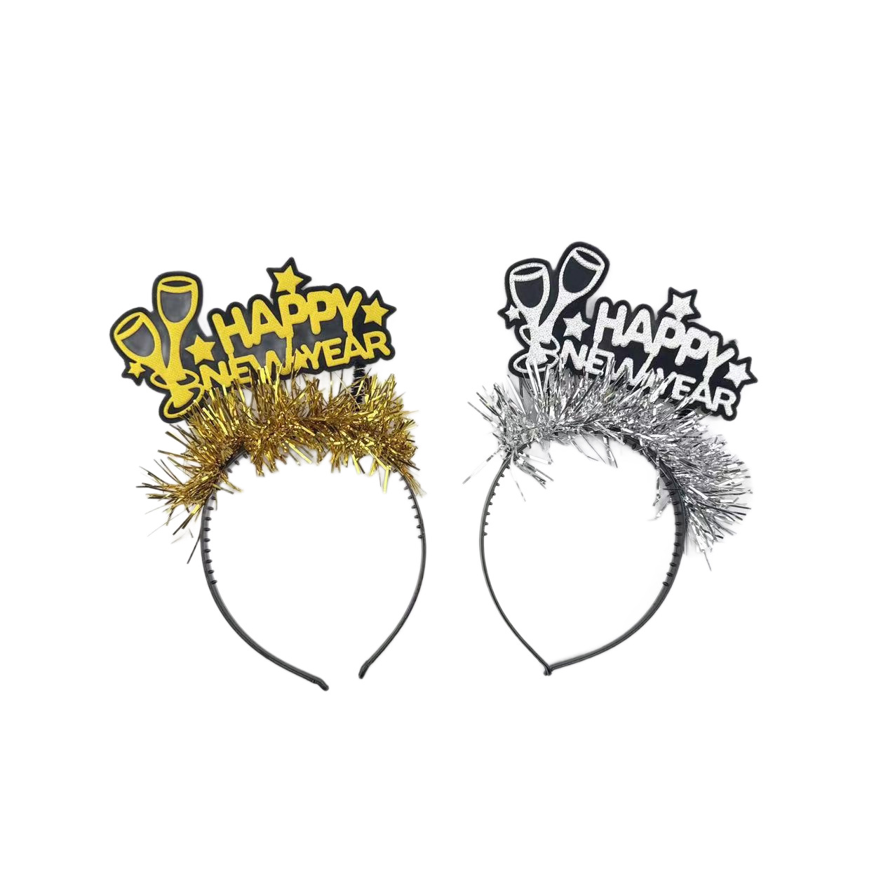 2027跨进亚马逊新款新年快乐派对发箍金色银色装饰头饰创意头箍