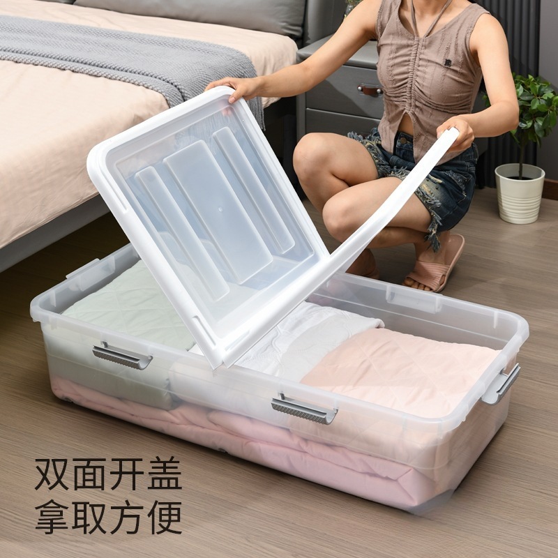新款床底收纳箱扁平带滑轮床下收纳大容量透明衣服宿舍储物箱收纳