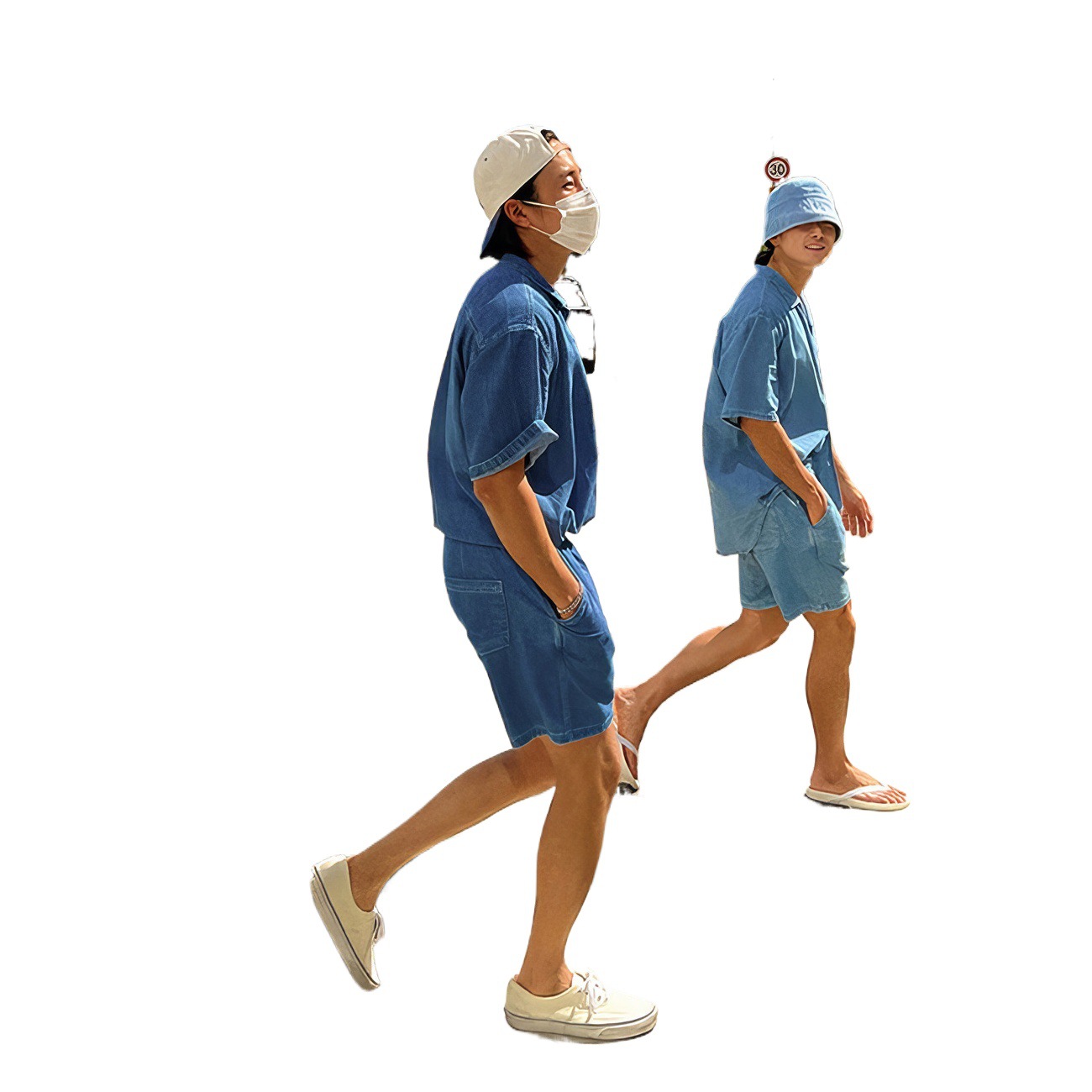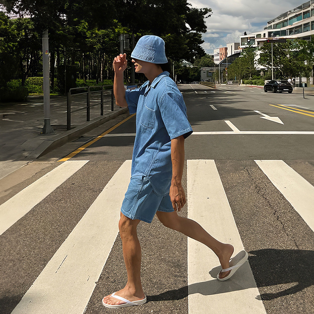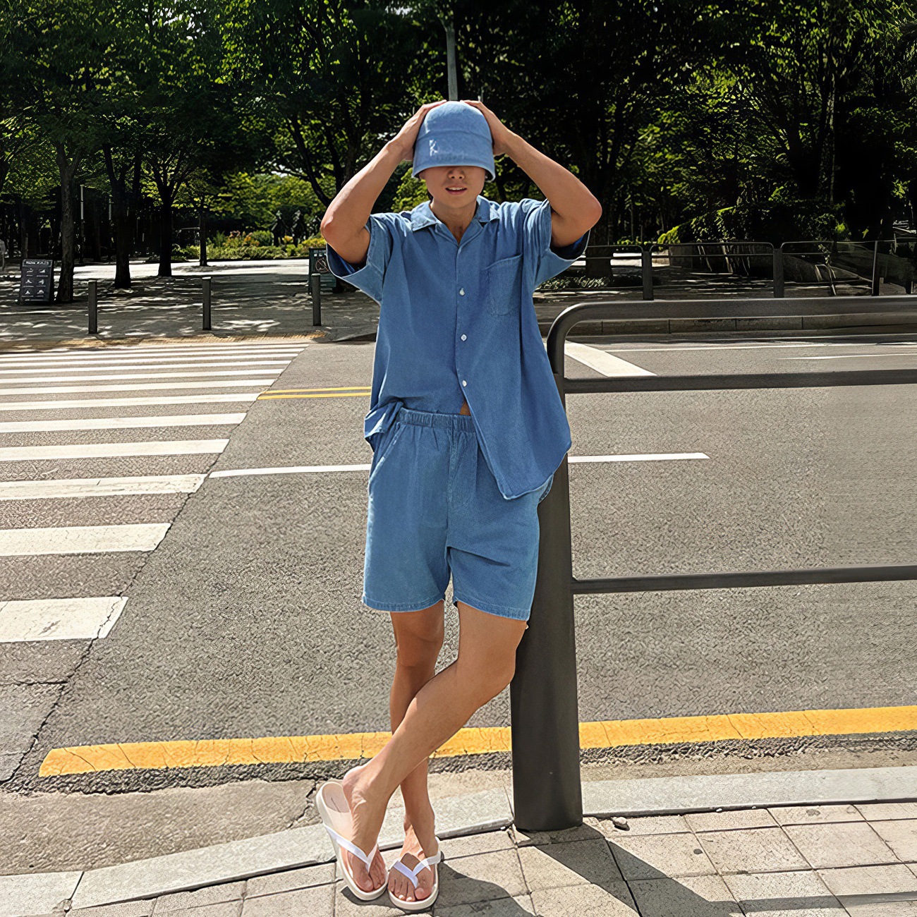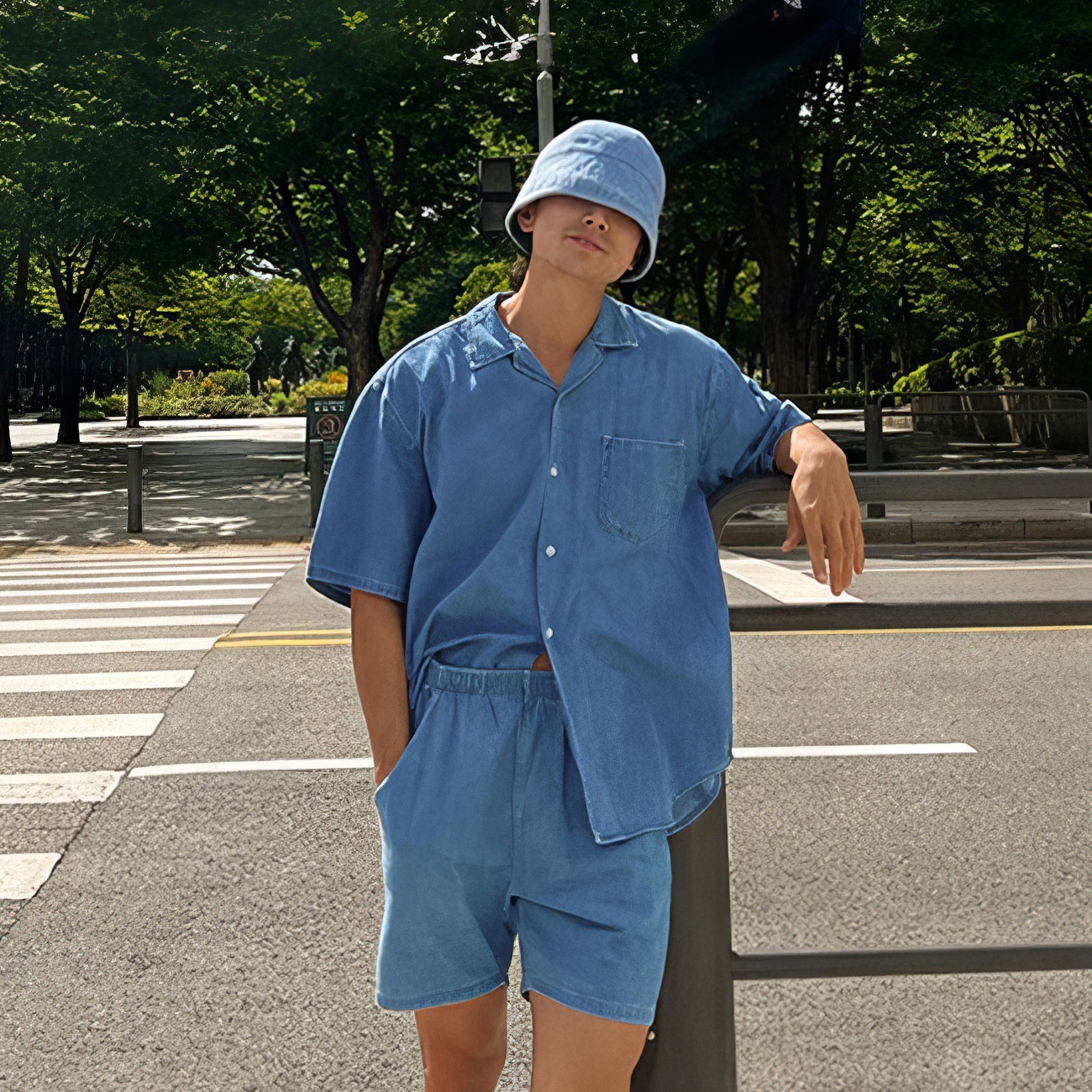 古巴领水洗牛仔短袖衬衫男士夏季复古港风潮流休闲慵懒风半袖衬衣