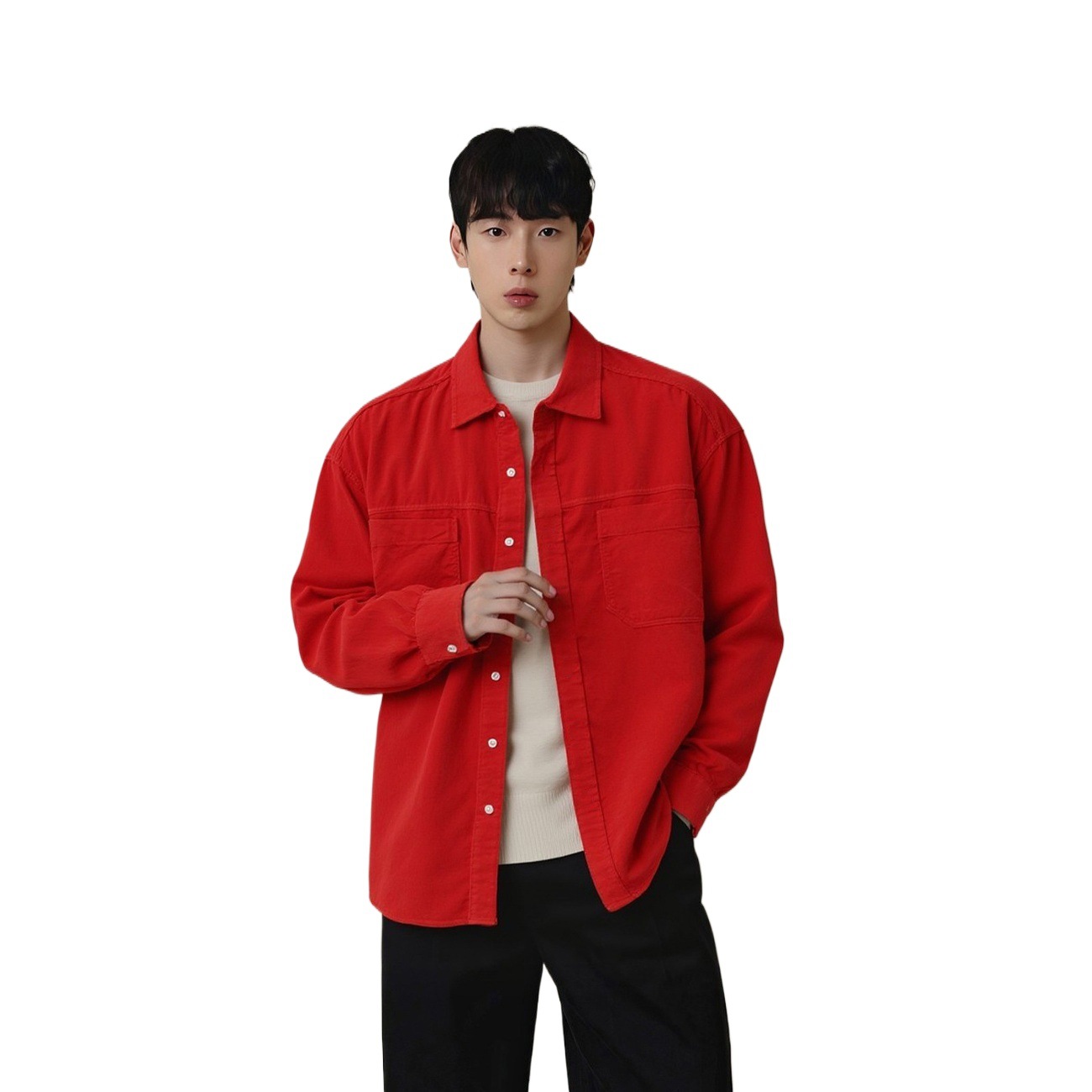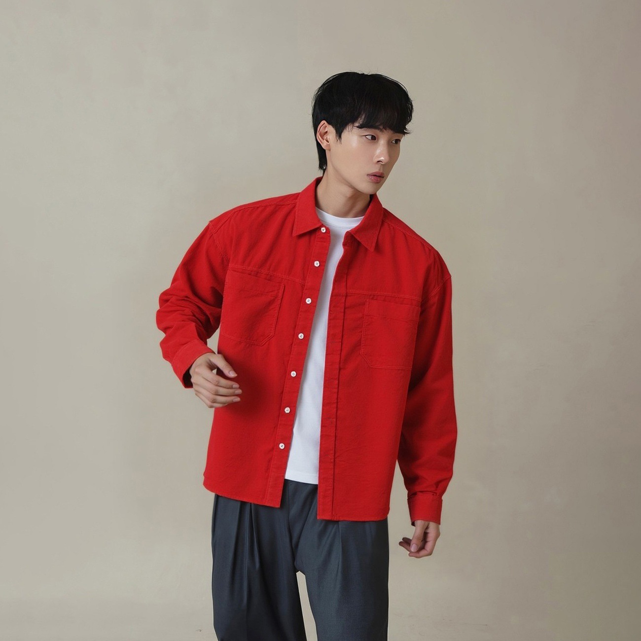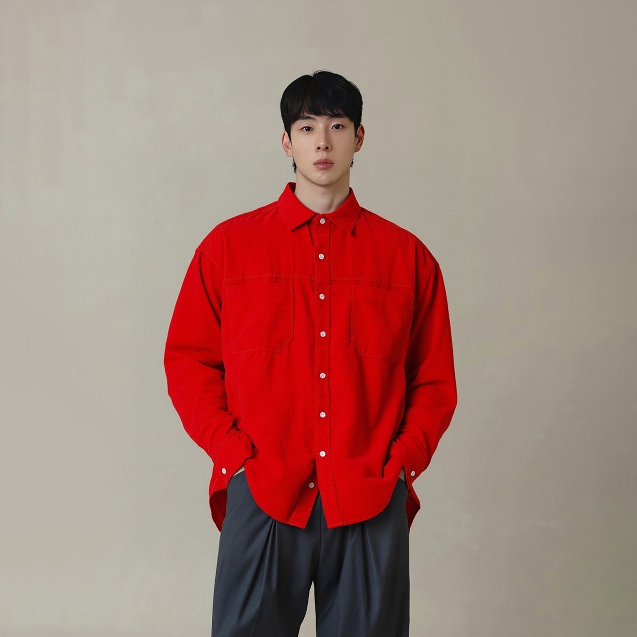 新年红色喜庆穿搭绒感灯芯绒长袖衬衫男款春秋季百搭订婚衬衫外套