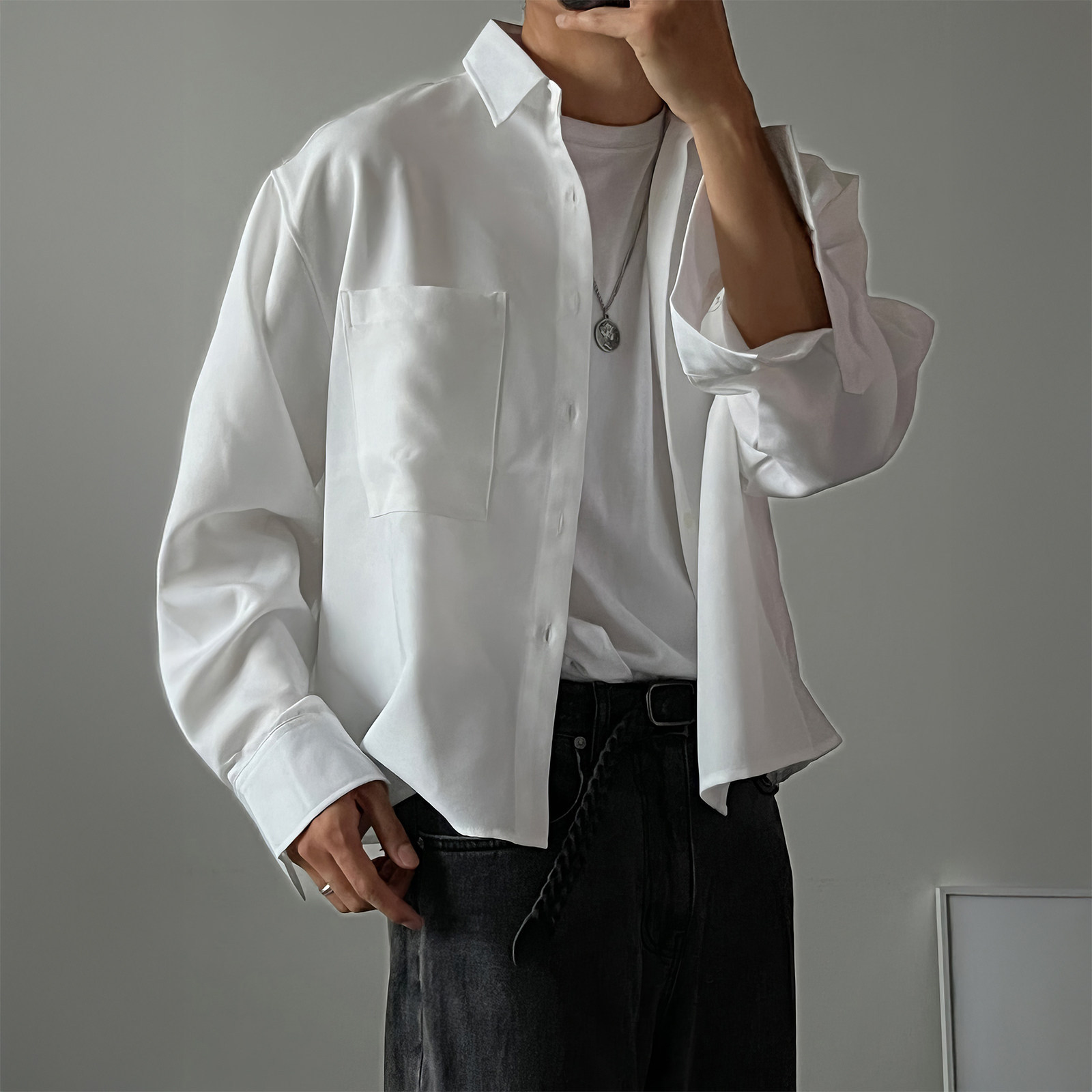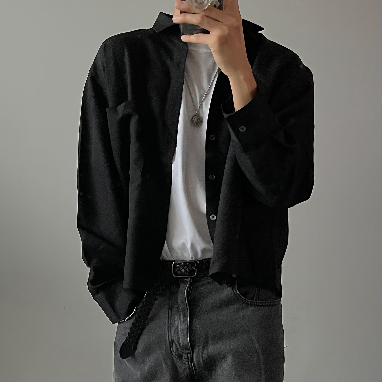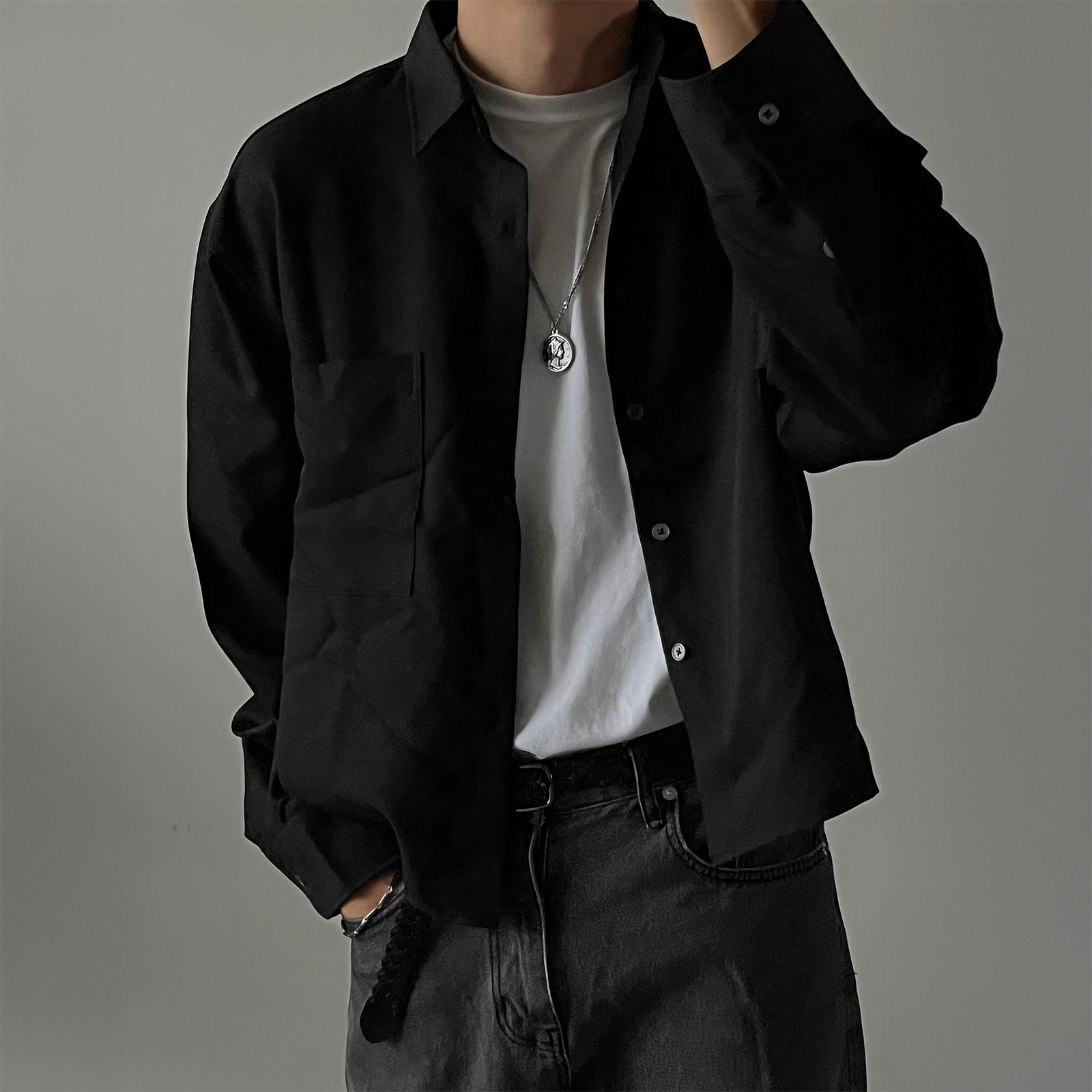 休闲风黑色防晒长袖衬衫男士2026新款宽松透气衬衣高级感痞帅外套