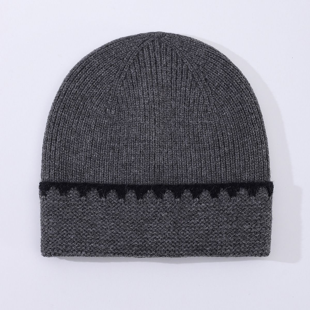 厂家批发女款定制logo字母黑白双色撞色翻边波浪纹秋冬时尚针织帽