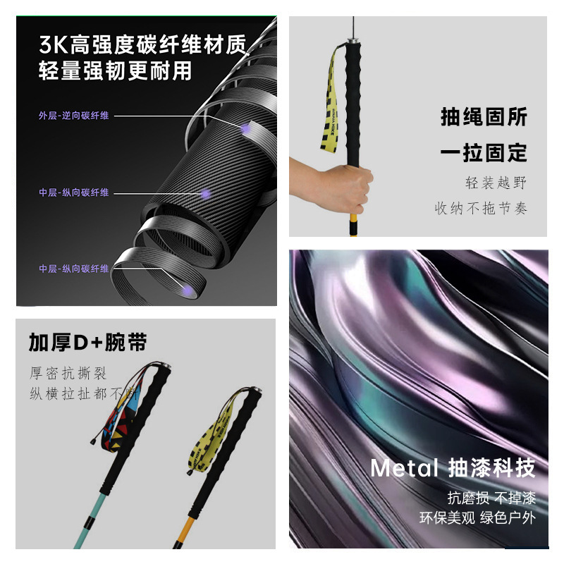 希步可定制T800高碳3k越野杖户外徒步越野跑男女同款碳钎维手杖