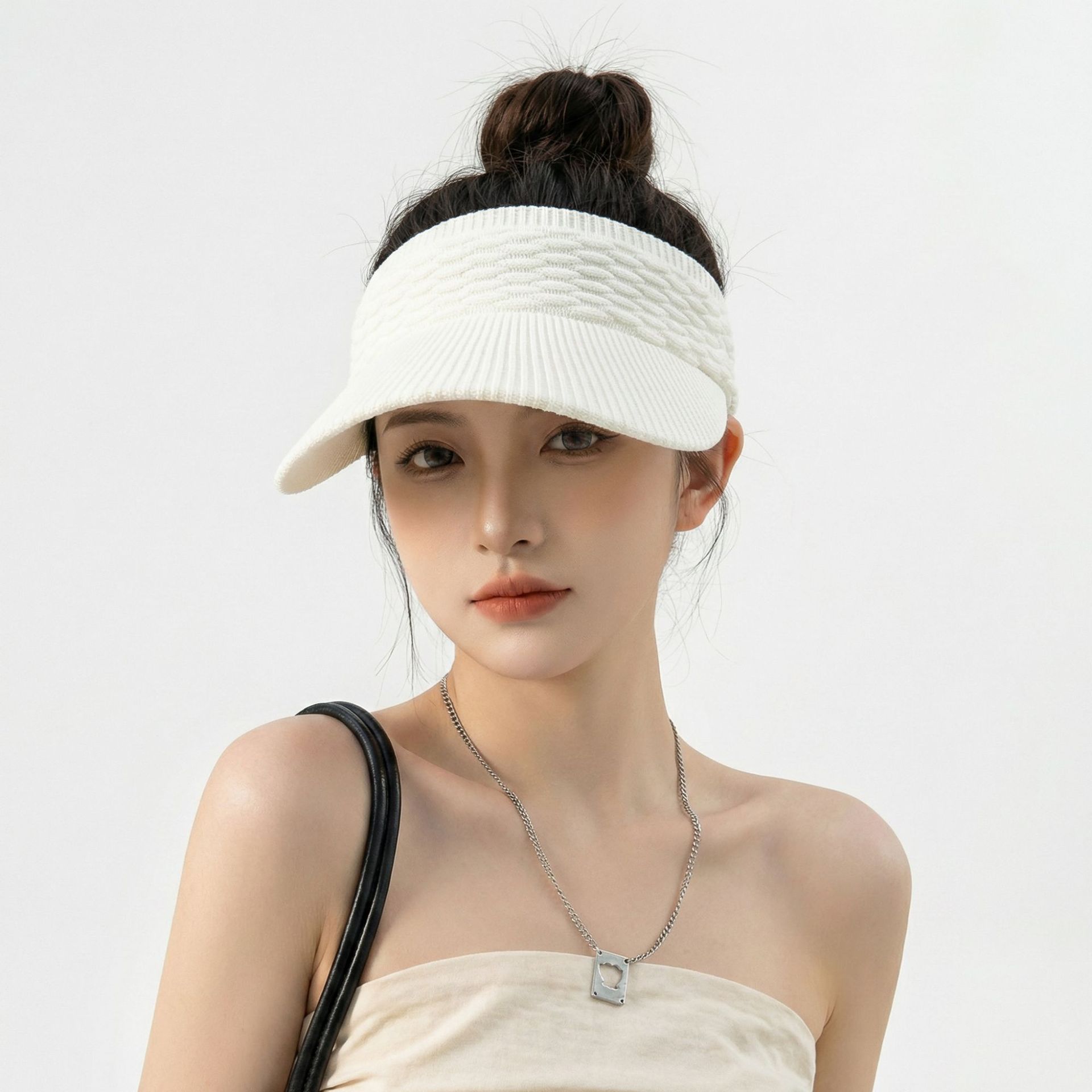 遮阳帽韩版针织新款鱼鳞空顶网红夏季棒球鸭舌帽户外运动时尚显脸