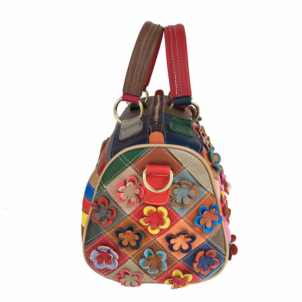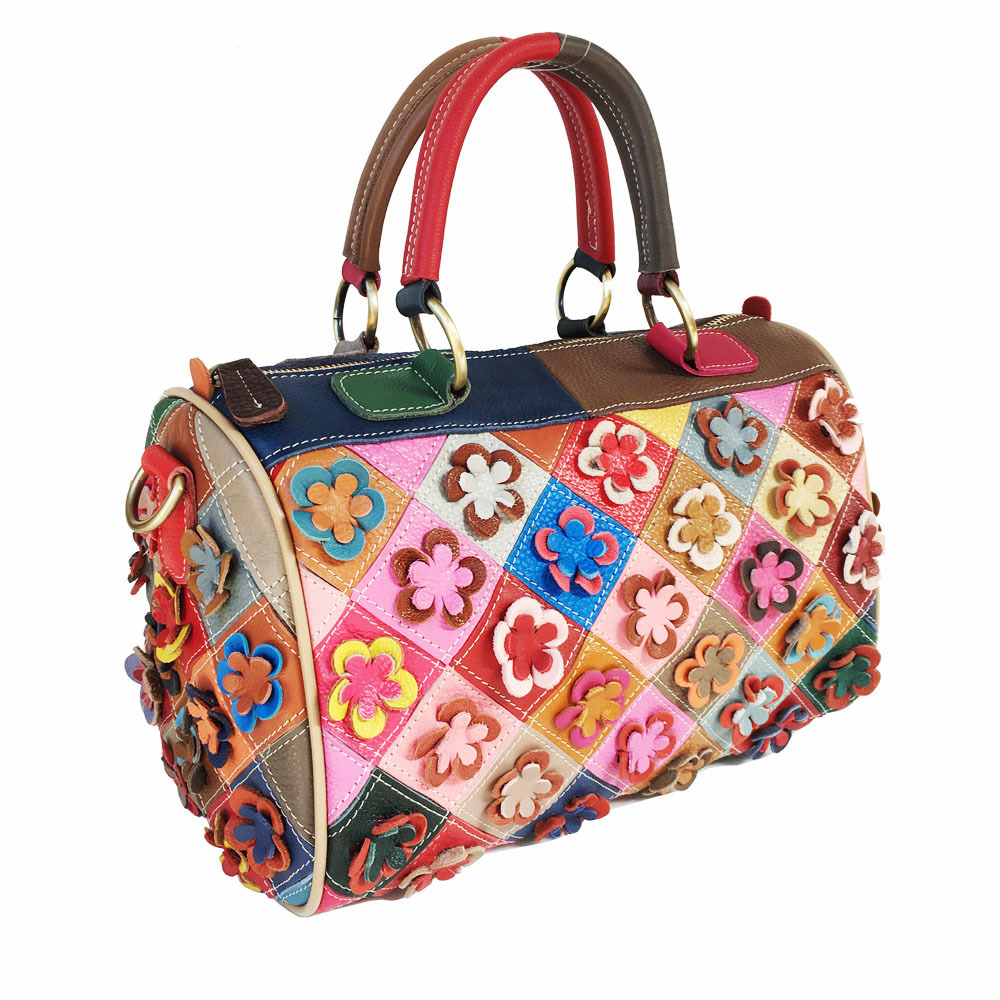 主营产品:真皮包包,背包,彩色拼接女包,手工花包