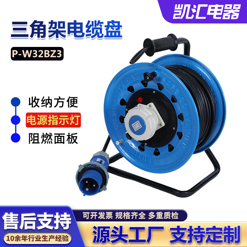 三角架320工业插IP67级32A3芯(P-W32BZ3)电缆卷盘 移动电源盘