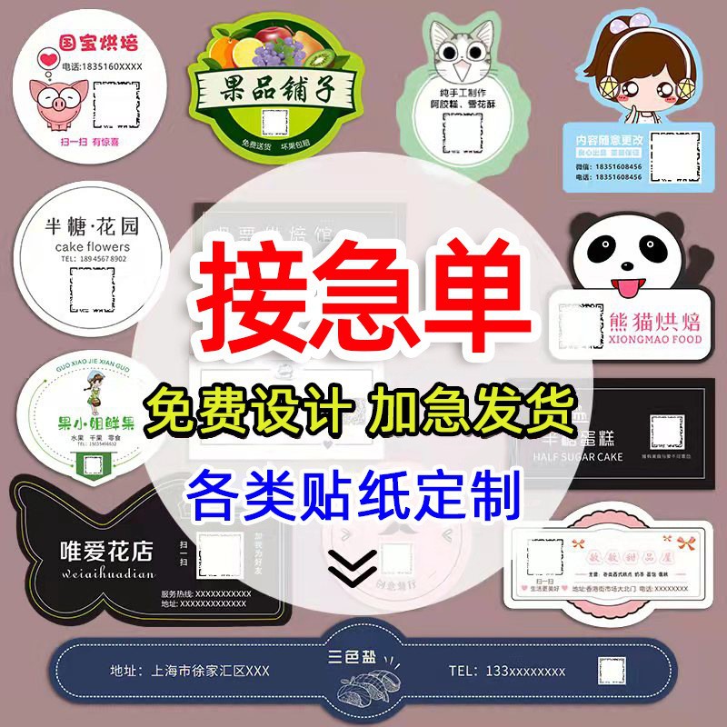 不干胶标签贴纸定制logo二维码标签铜版纸封口贴pvc透明烫金印刷