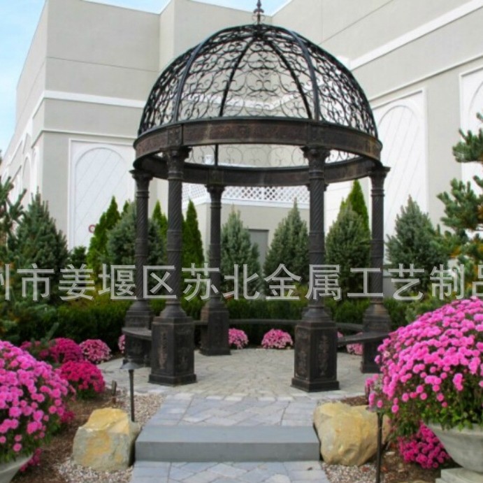 欧式锻造铁艺凉亭圆顶 景区钢结构组合穹顶造型 铁艺装饰亭顶