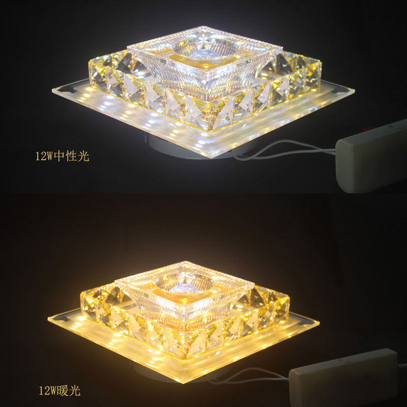 金色三色led过道灯 走廊灯 方形玄关灯入户灯门厅吸顶灯水晶暗装