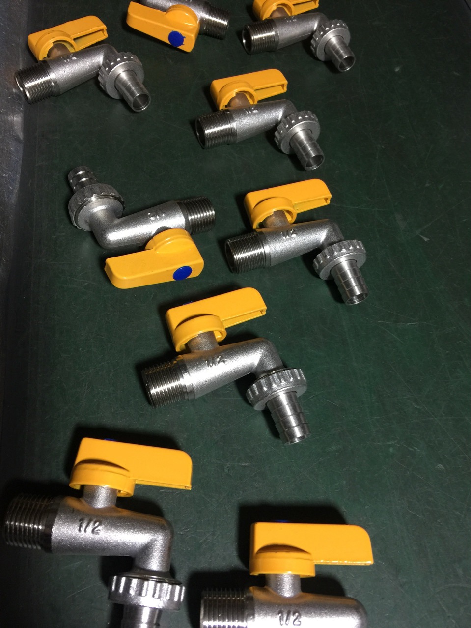 玉环铜阀门 源头厂家批发 黄铜黃蓝色短柄水咀