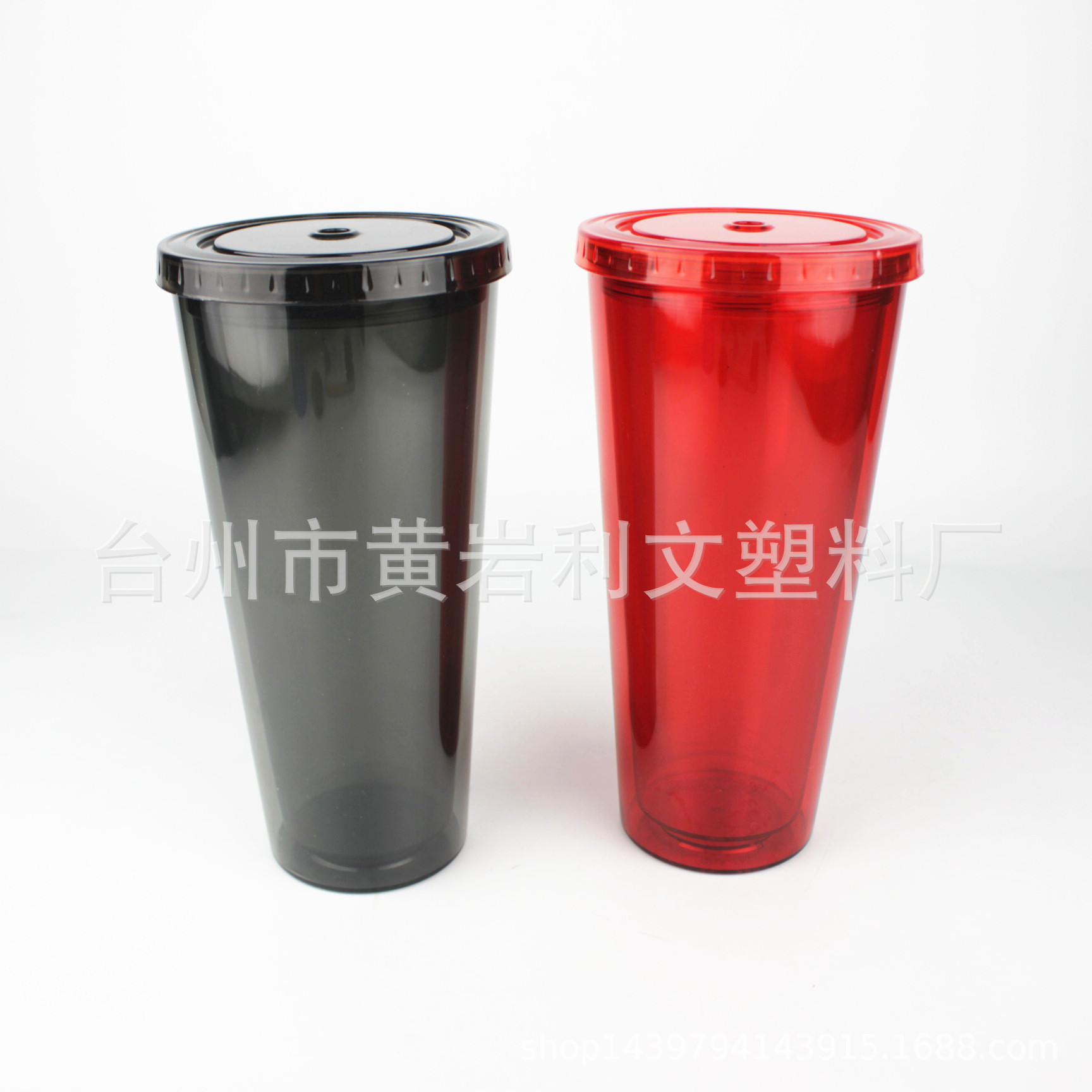爆款22OZ双层吸管杯 PS双层塑料吸管杯 650ML大号果汁杯 可定LOGO
