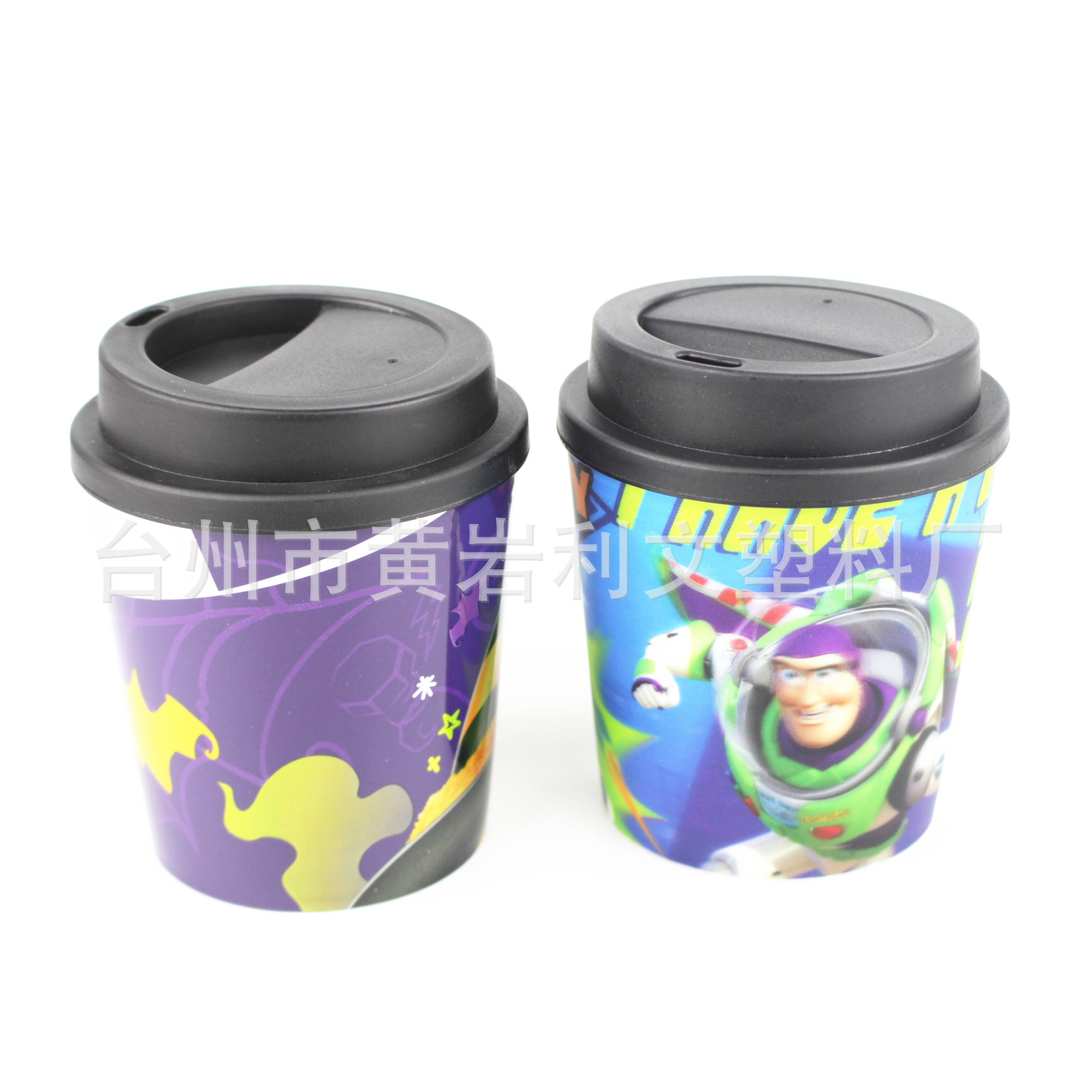 爆款3D杯 塑料咖啡杯 膜内贴咖啡杯 pp果汁杯 儿童热饮杯