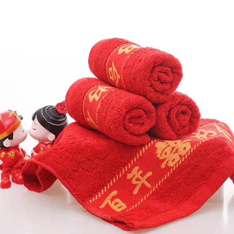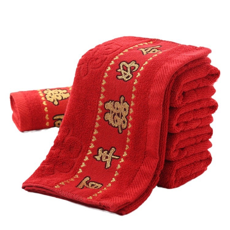 厂家批发结婚纯棉毛巾百年好合红色双喜提花全棉毛巾婚庆礼品16支