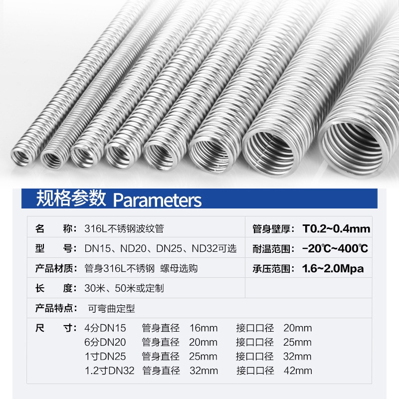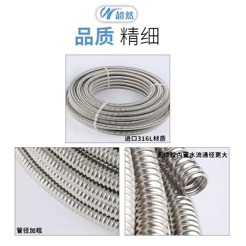 4分6分1寸2寸热水器冷热进水软管加厚防爆毛坯管316L不锈钢波纹管