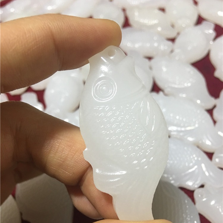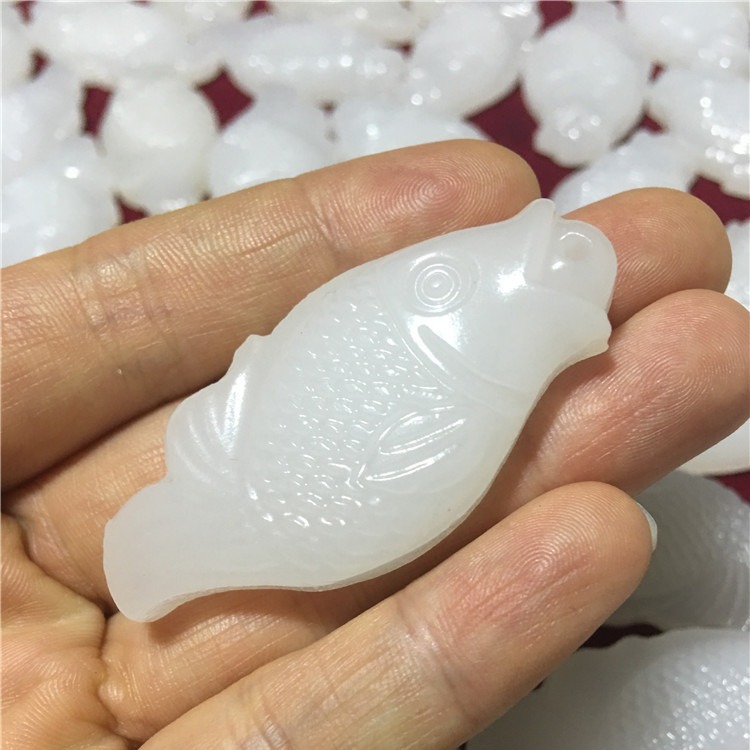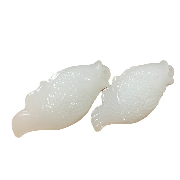 天然玉石阿富汗白玉鲤鱼挂件连年有余吊坠直播货源