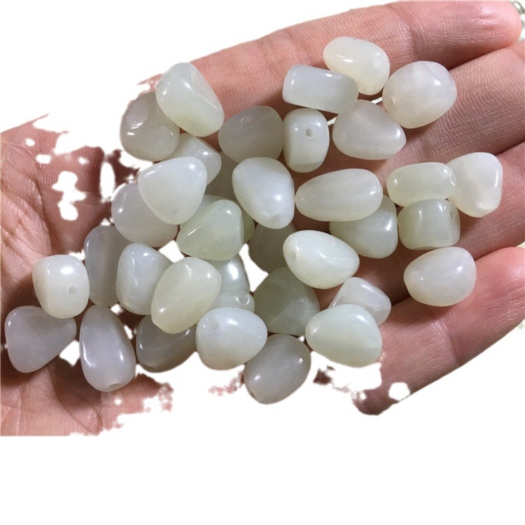 新疆和田玉珠子随形散珠青白玉带皮色玉珠diy手链项链串珠