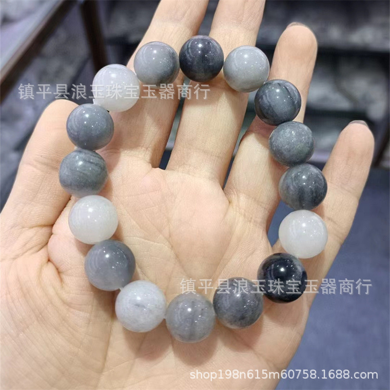 天然玉石新疆金丝玉佘太翠烟灰色水墨丹青圆珠手串散珠配饰