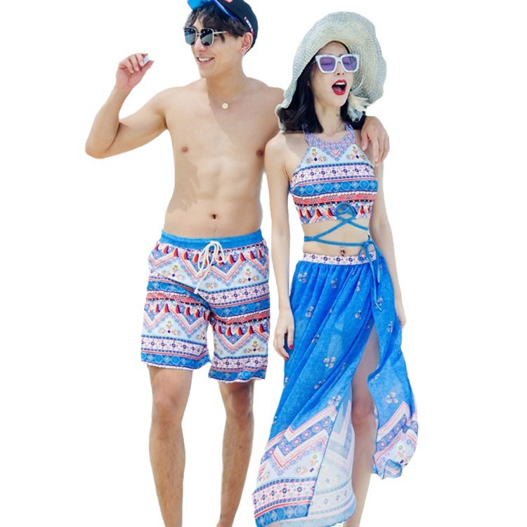 2025新款韩国情侣分体游泳衣显瘦遮肚比基尼三件套温泉男士沙滩裤