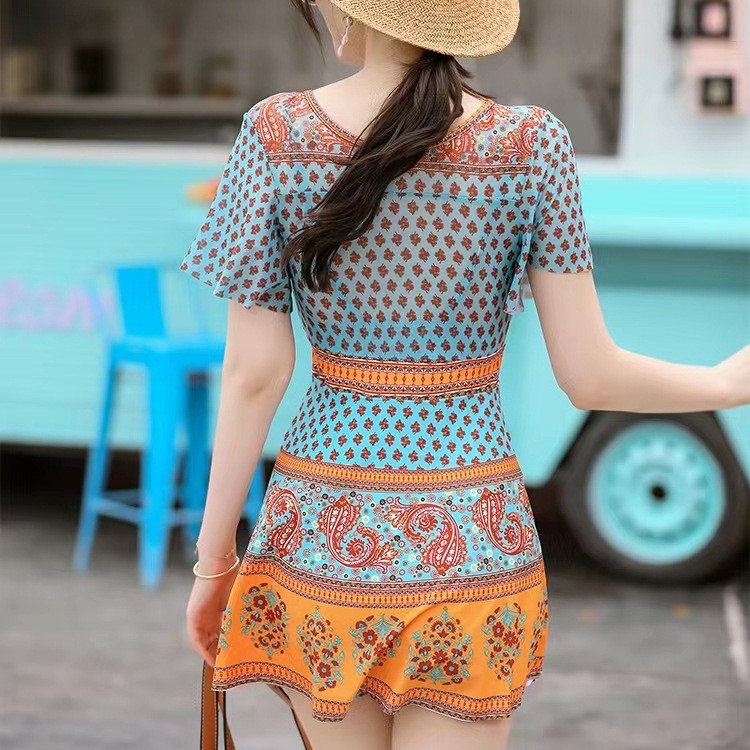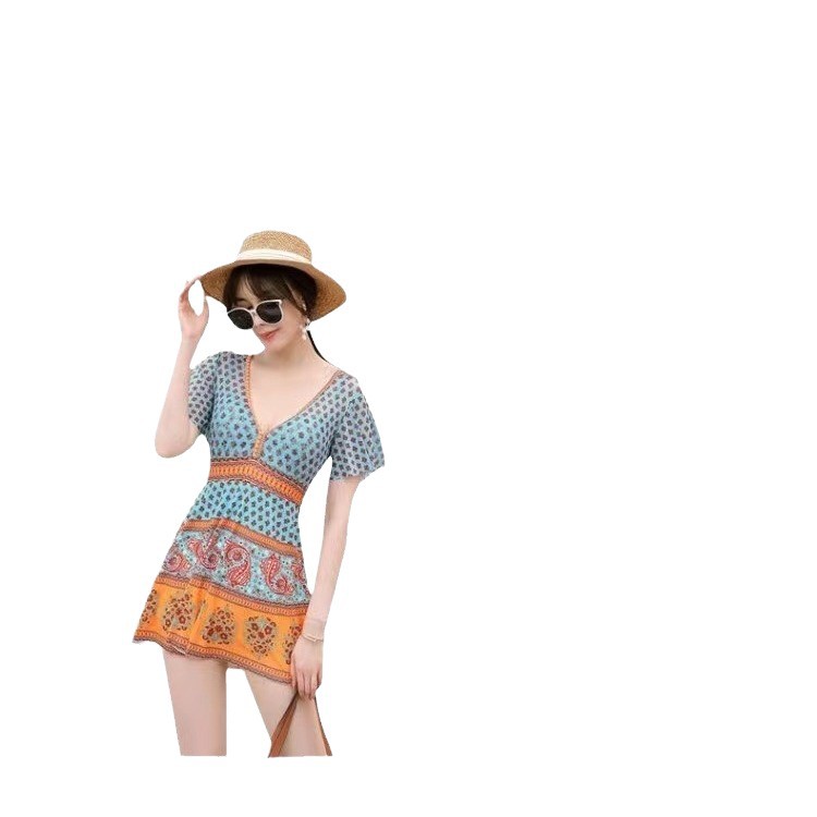 2025新款女士大码韩版保守游泳装遮肚连体裙式平角钢托聚拢游泳衣
