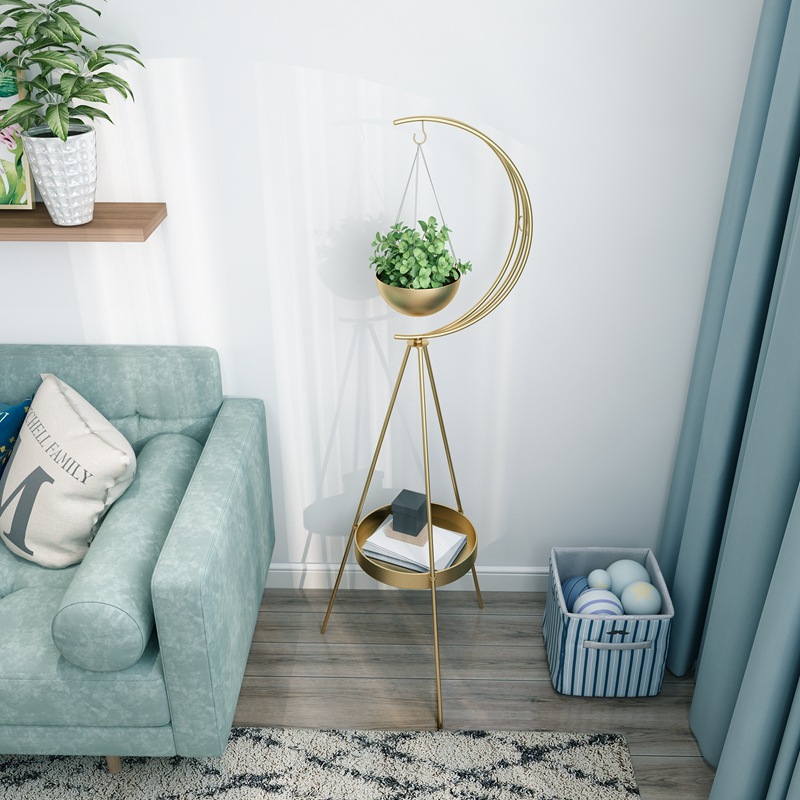北欧铁艺三角花架现代简约家用客厅沙发边吊篮花架子阳台落地花架