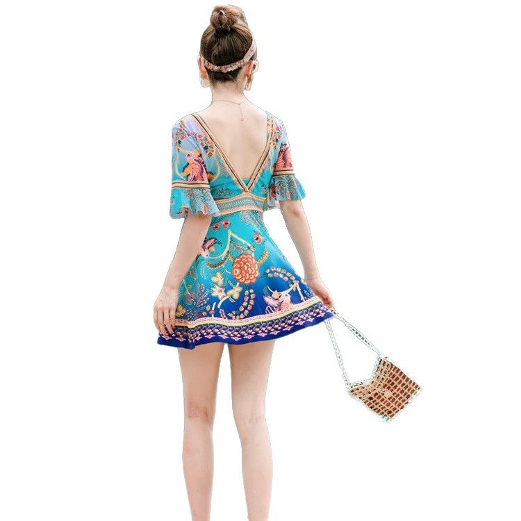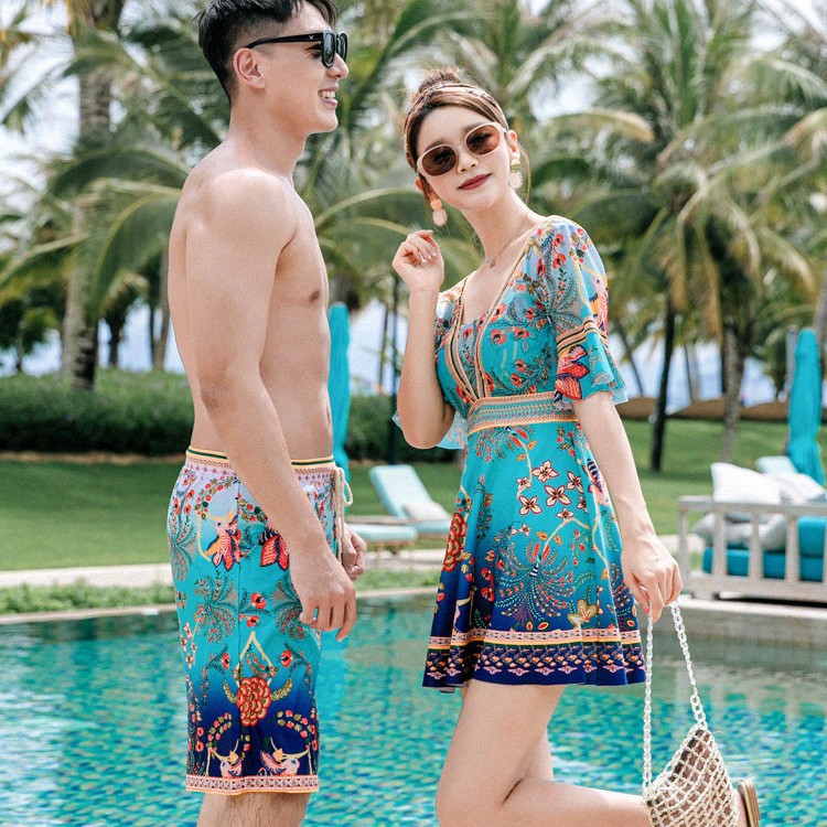 2025新款泳衣女士连体裙式保守显瘦大码平角情侣男沙滩裤温泉泳装