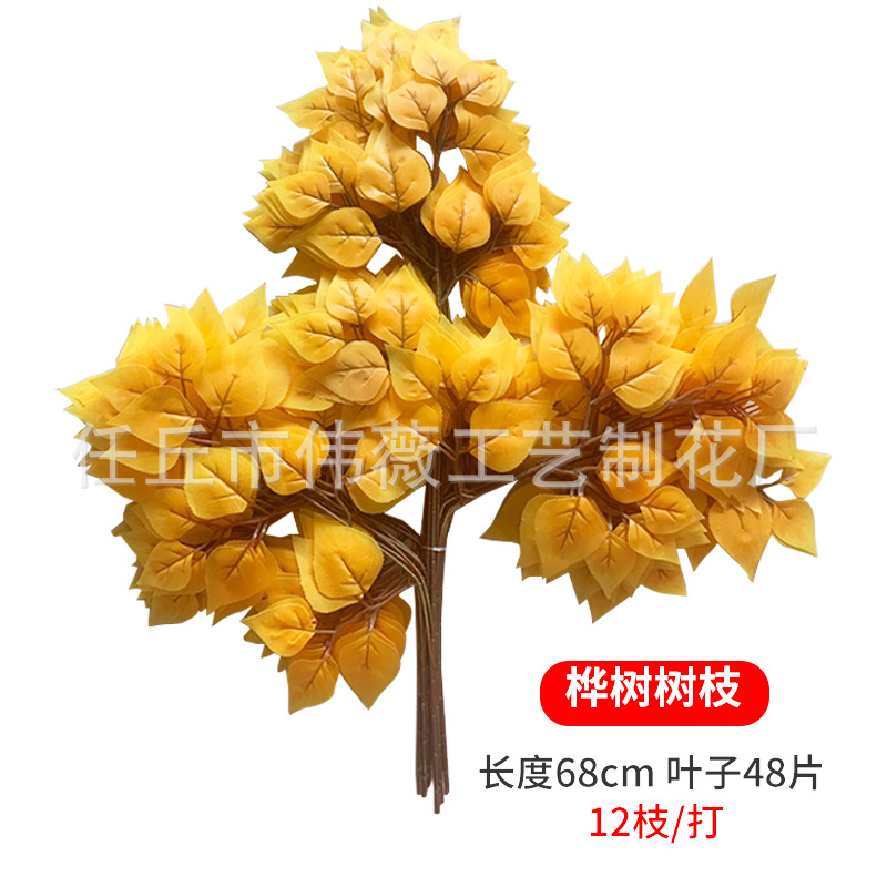 仿真绿植墙塑料桦树叶假叶子丝印桦树榕银杏叶婚庆装饰植物高仿真