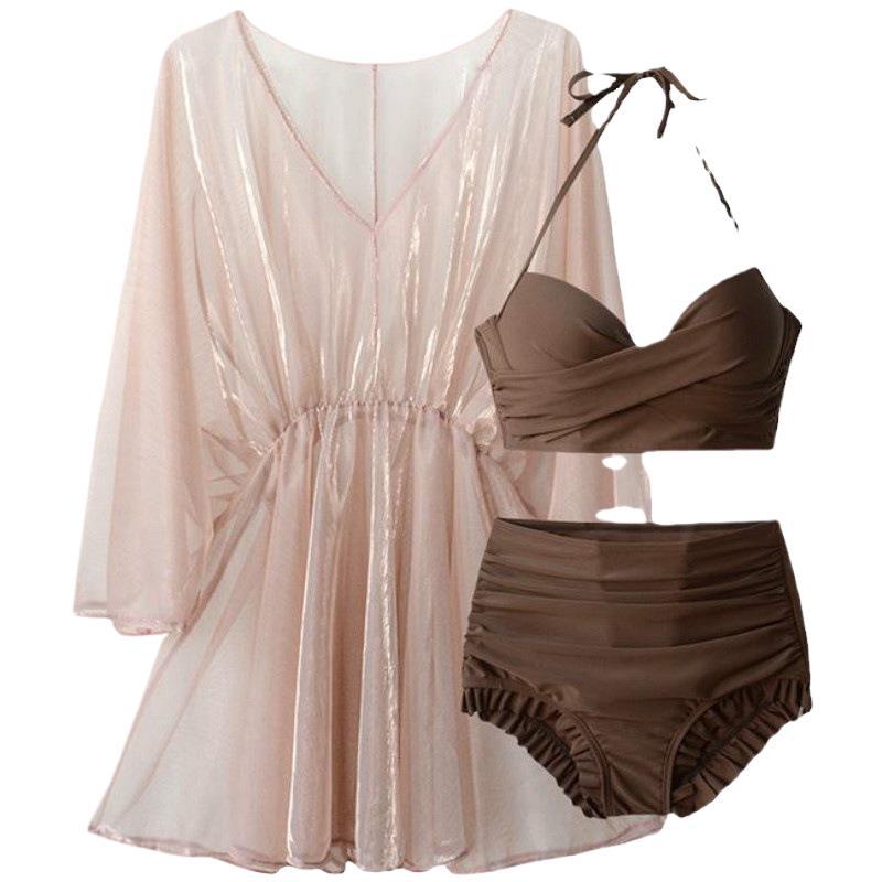2025新款泳衣女韩国超仙学生分体度假温泉少女泳装网纱罩衫三件套