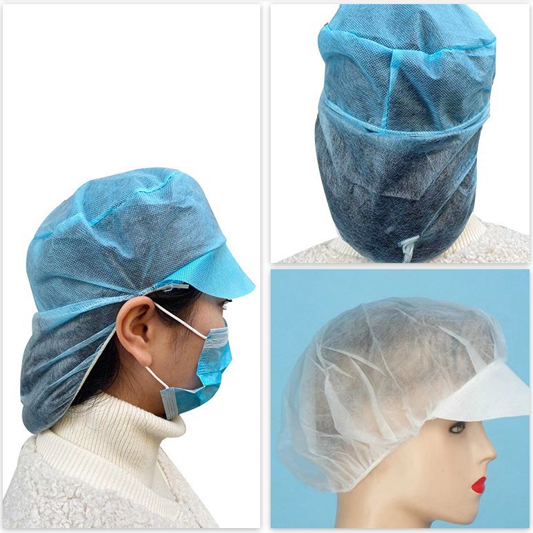 一次性女工帽无纺布帽子车间工厂防尘帽鸭舌帽带发兜头套现货供应
