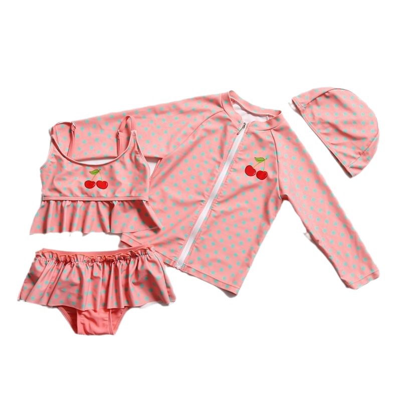 2025年新款儿童泳衣女童2-3岁女孩中大童分体裙式长袖带衫三件套