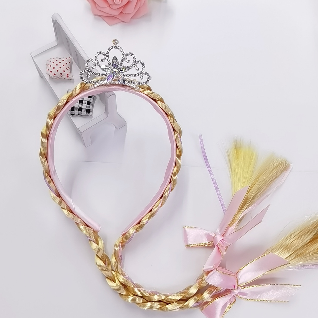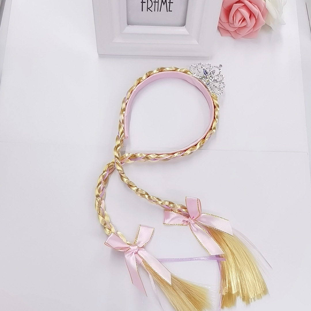 韩版网红假发辫子皇冠头箍可爱女宝宝头饰发饰小女孩生日礼物发箍