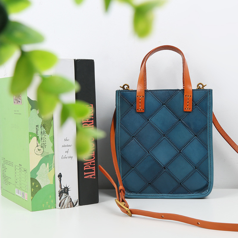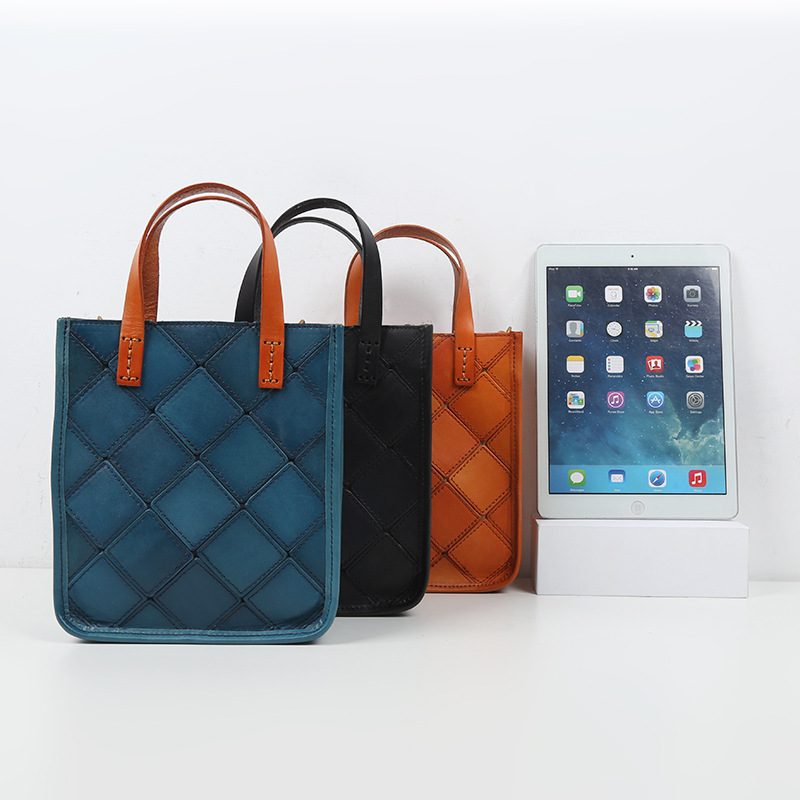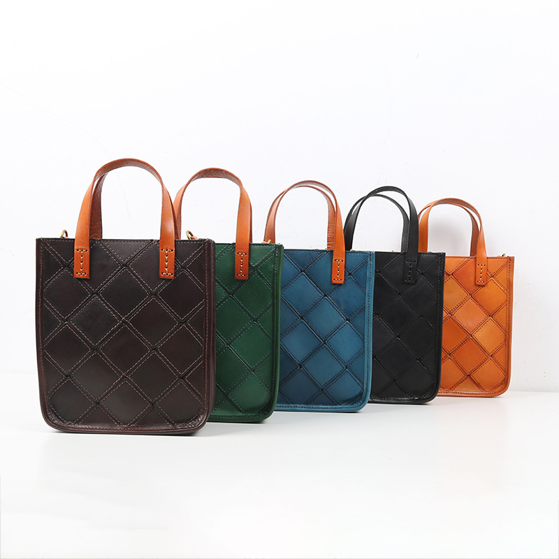 欧美新款复古手提托特植鞣皮女包 菱格真皮女包 头层牛皮斜挎包