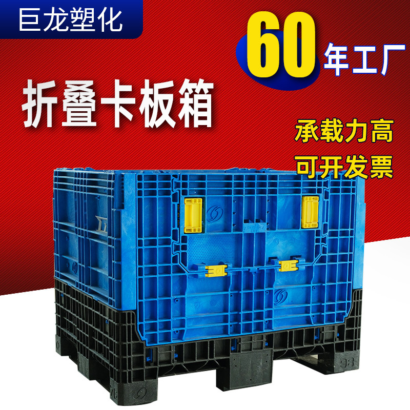 叉车塑料折叠式卡板箱 大号折叠周转箱可堆叠加厚物流卡板箱厂家