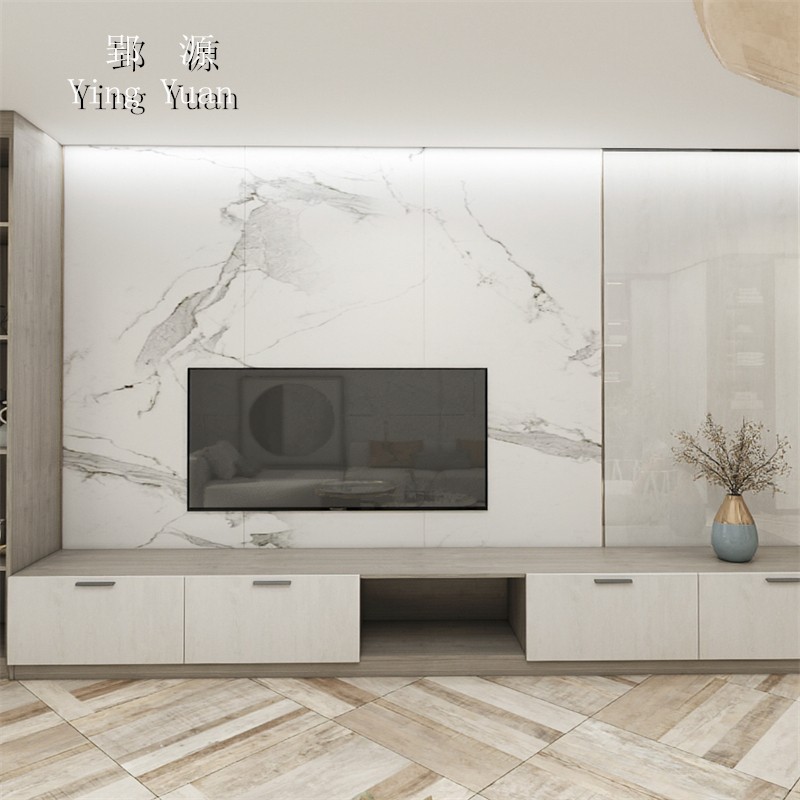 岩板电视背景墙木饰面轻奢现代客厅大理石木格栅石纹影视墙装饰板