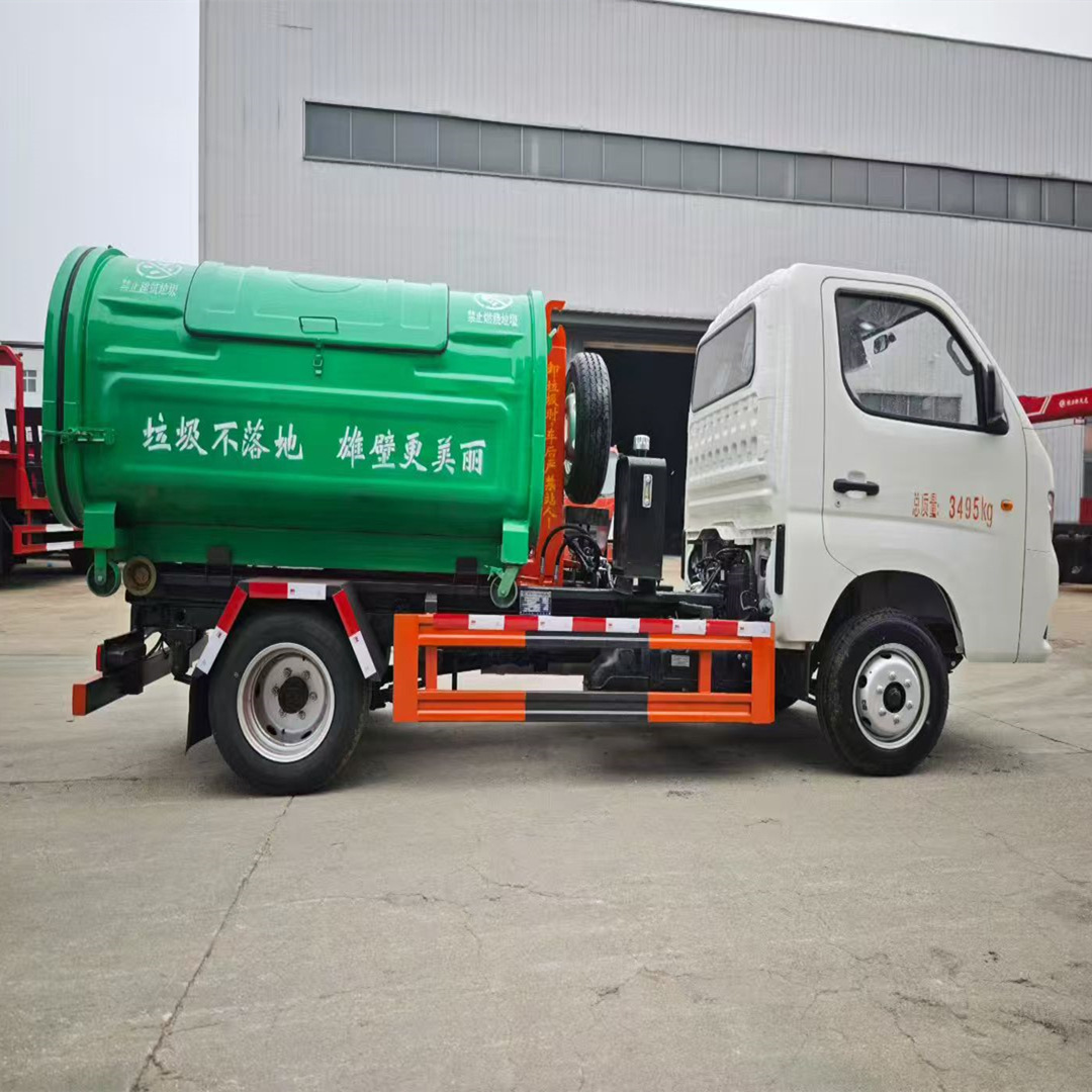 国六福田3立方钩臂垃圾车厂家直销 蓝牌四轮汽油勾臂垃圾车价格