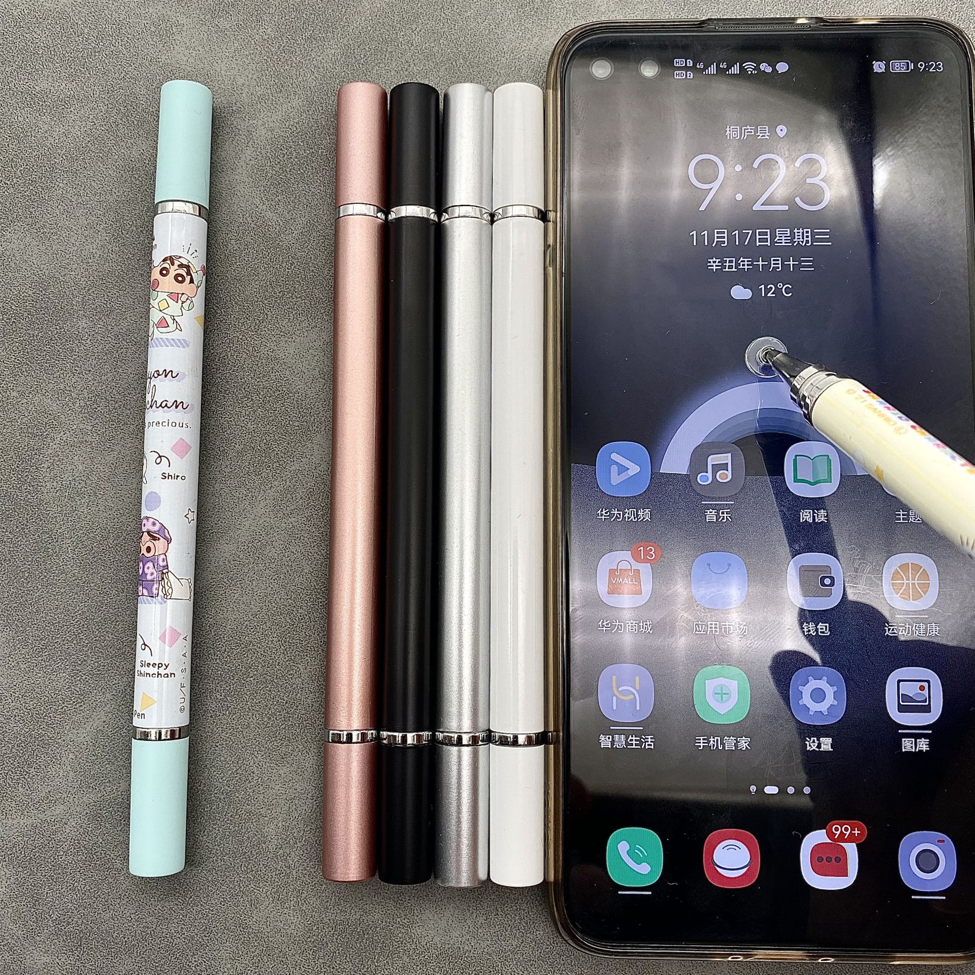 圆形精美吸盘电容触控笔 可热转印二合一触屏圆珠笔