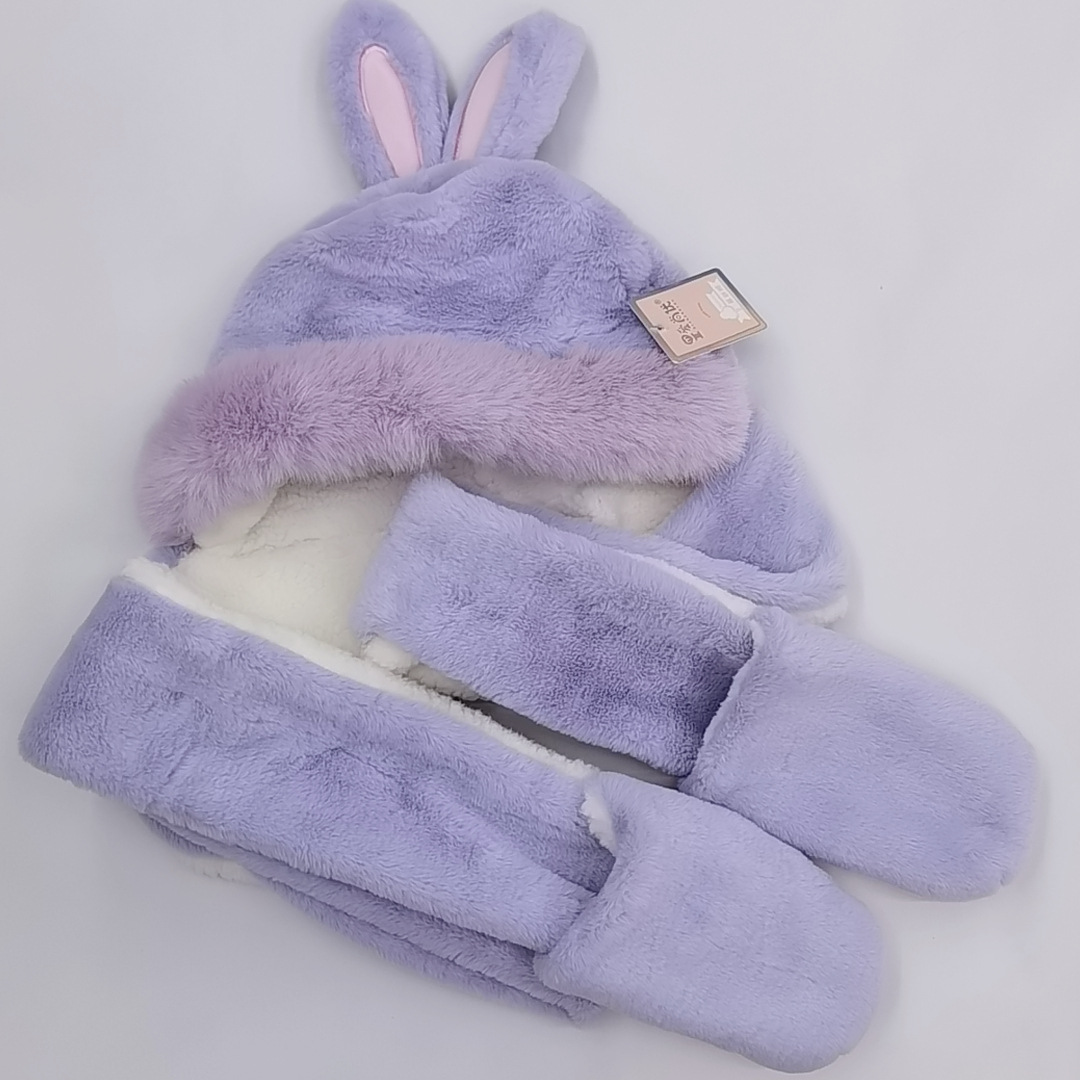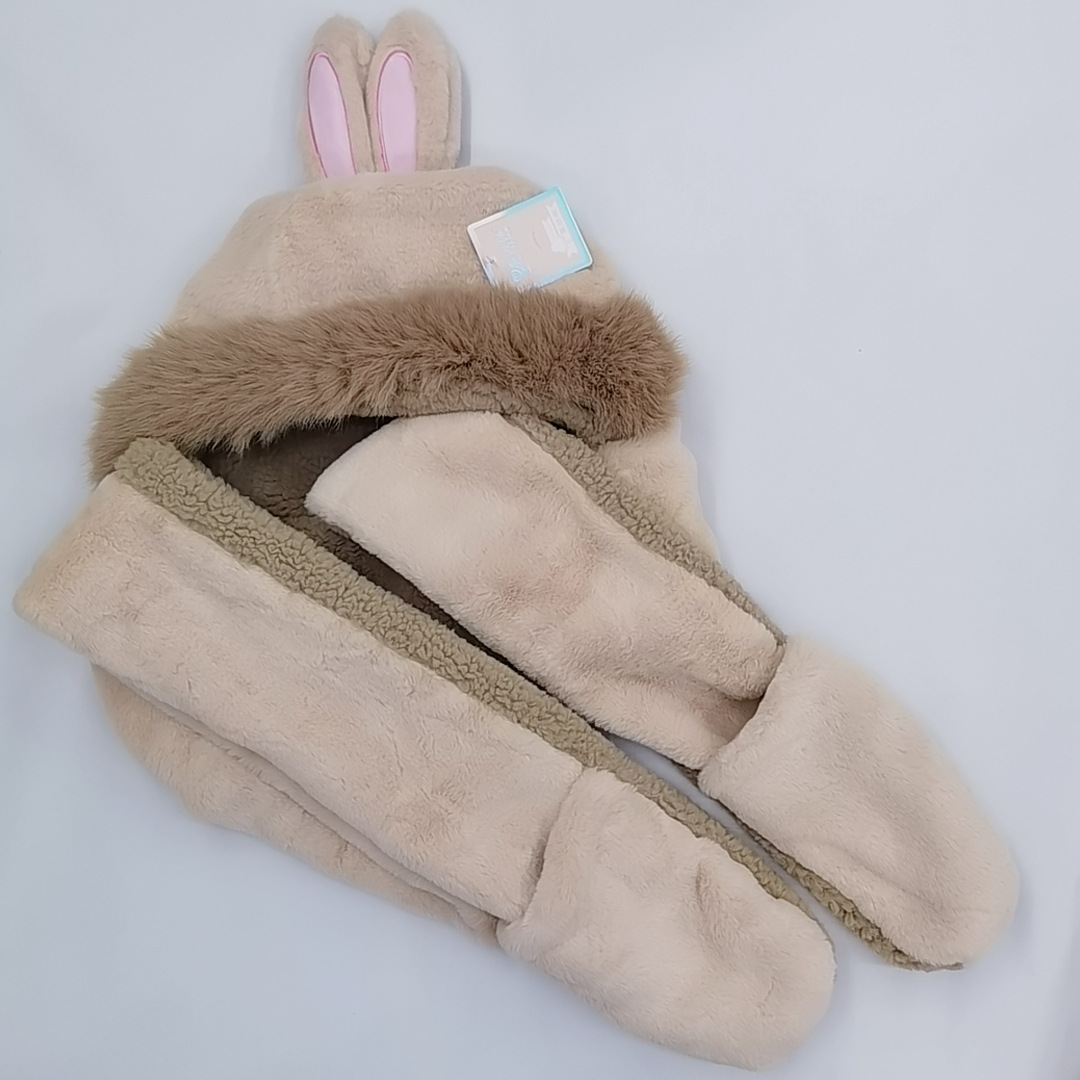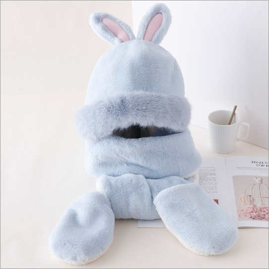 爱尚优可爱兔耳朵帽子女秋冬百搭围脖围巾一体骑车保暖手套三件套