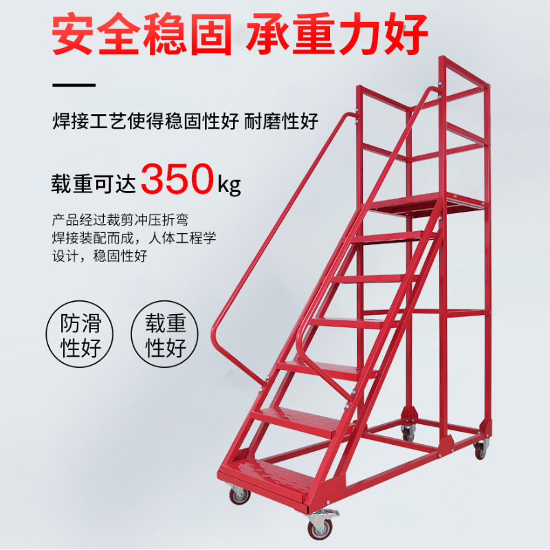 仓储车间登高梯红色移动式平台登高梯商场取货用梯工程安全防护梯