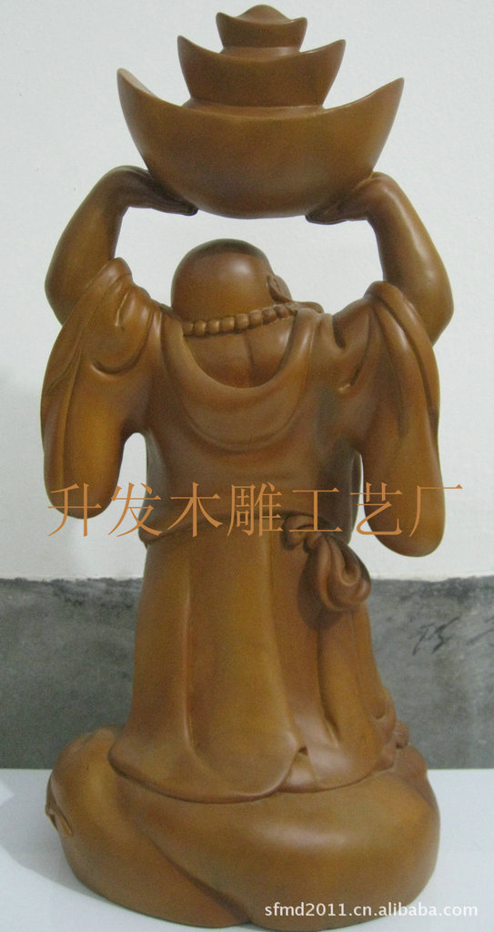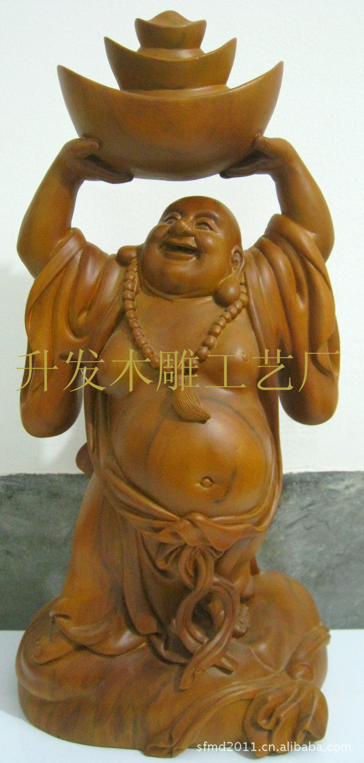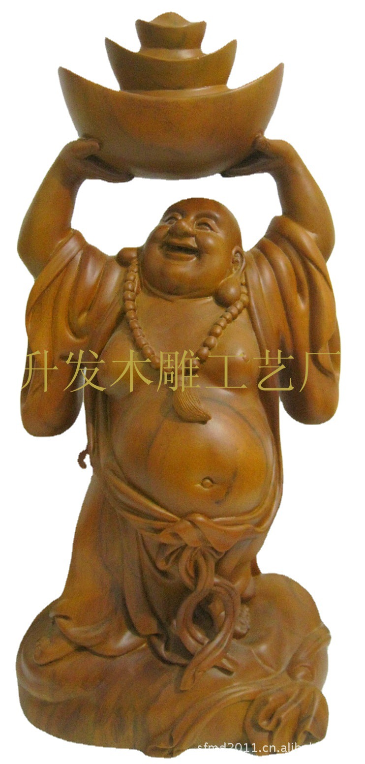 创意中式木雕弥勒佛像 寺庙木雕大型佛像供奉招财弥勒佛装饰摆件