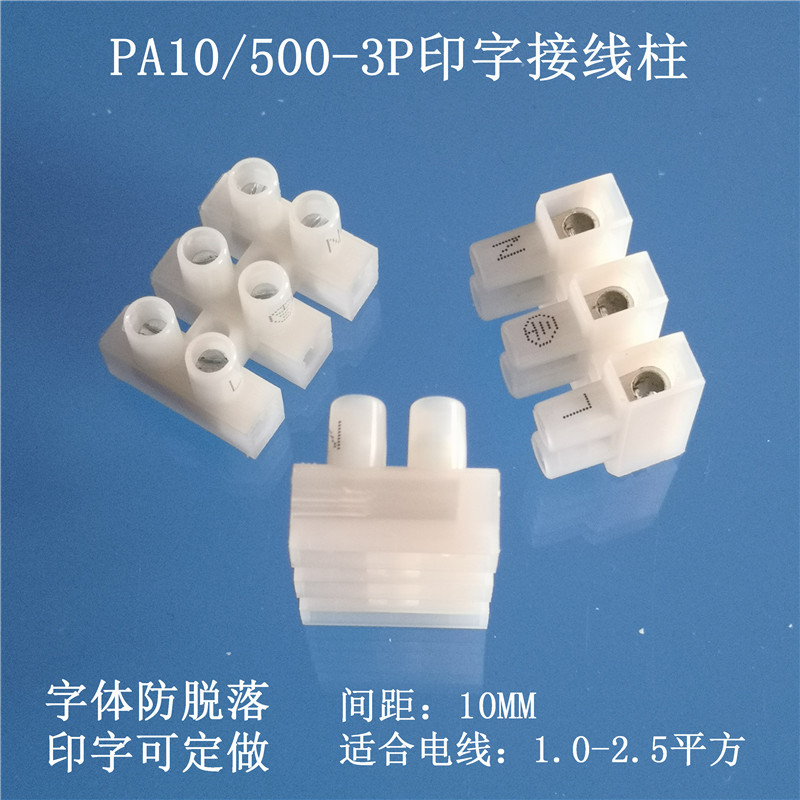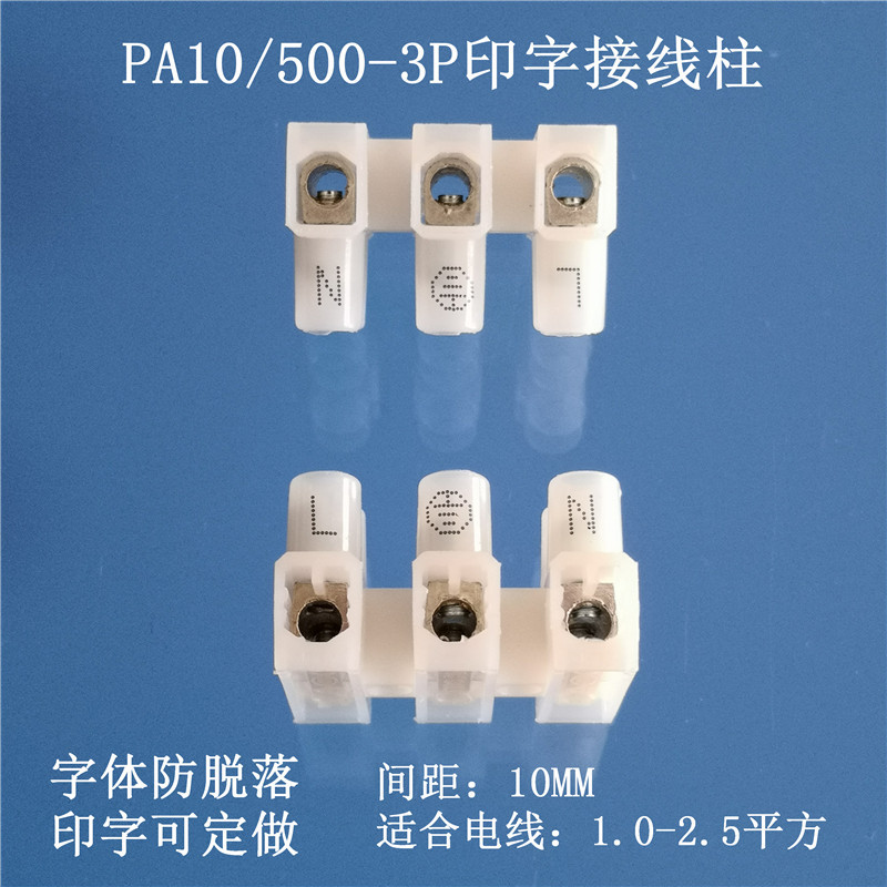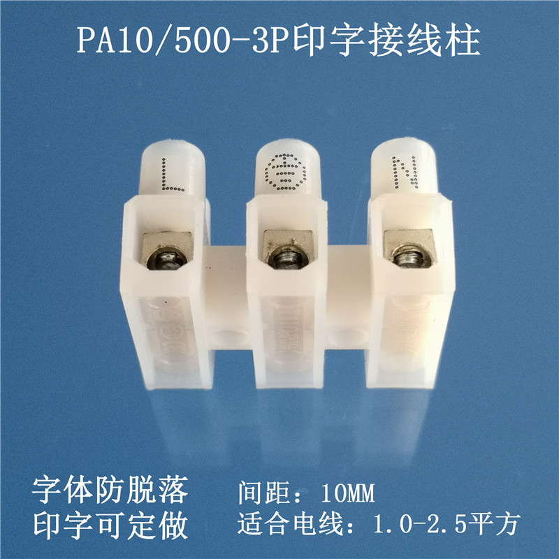 三位成膜接线柱PA10-3P接线端子500三位接线排10H端子可印字VDE