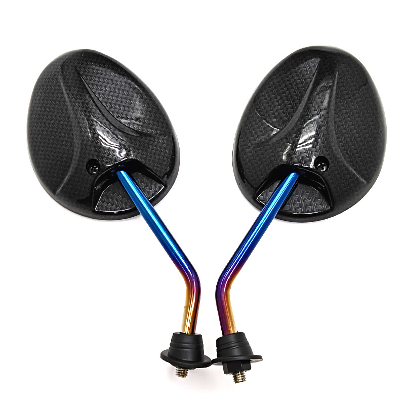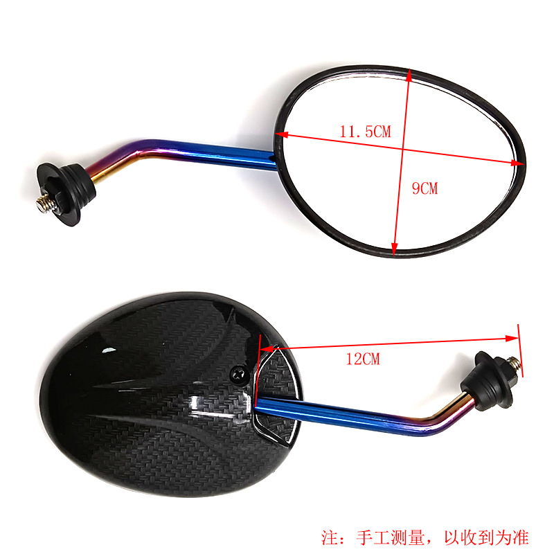 摩托车电动车后视镜踏板车碳纤维水转印花纹 烧钛反光镜 千禧龟